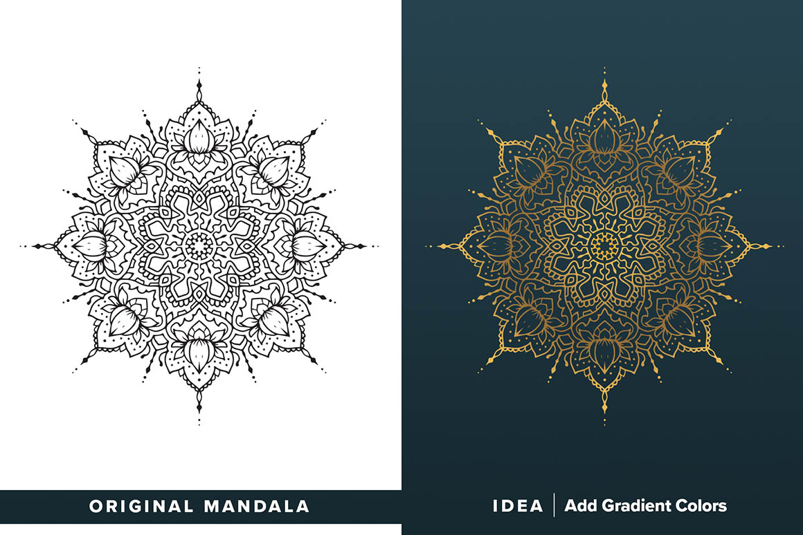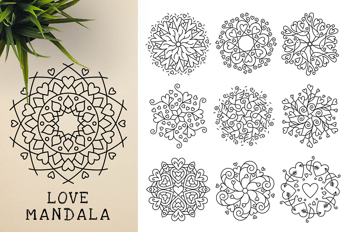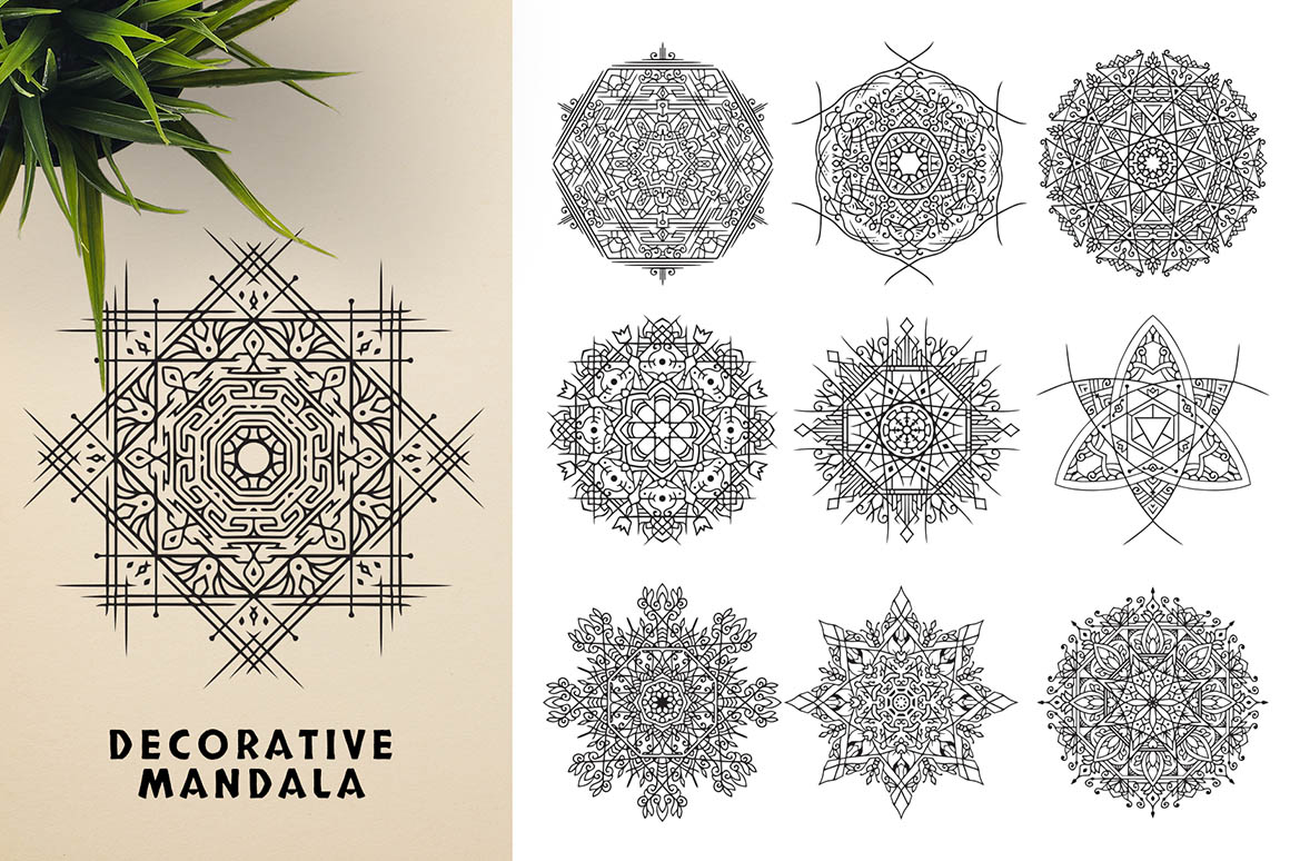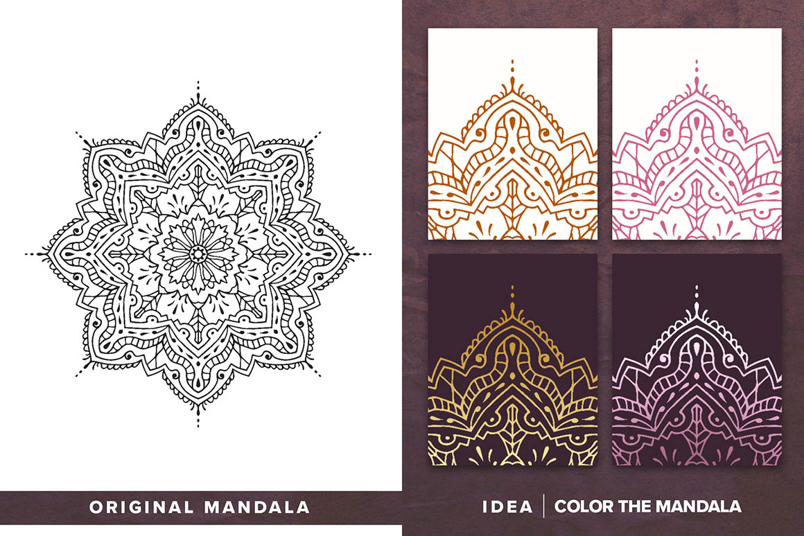 - Vector Eps 10, PDF – you can scale them on any size, color them, etc. (each mandala is saved as separate file).