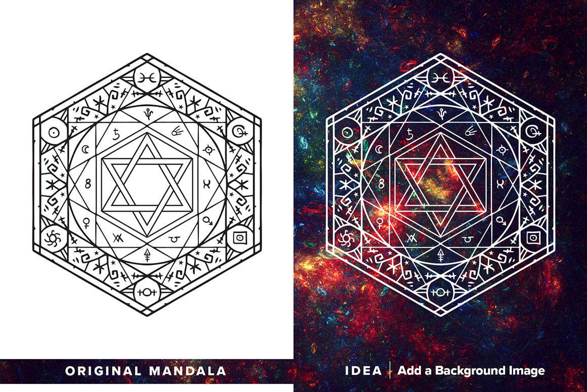 - HQ Transparent PNG around 3000px 300ppi – mandalas are saved with transparent background so you can place them on top of other image or use your own background.
