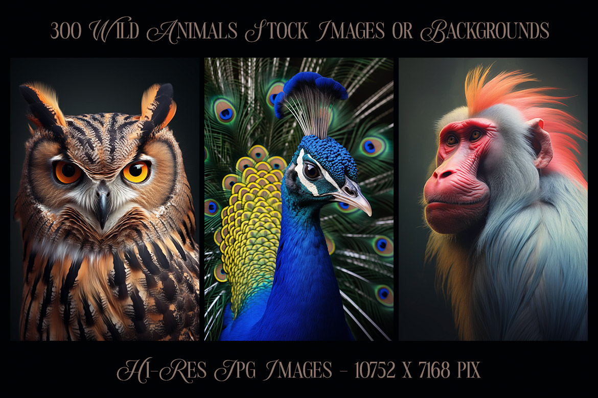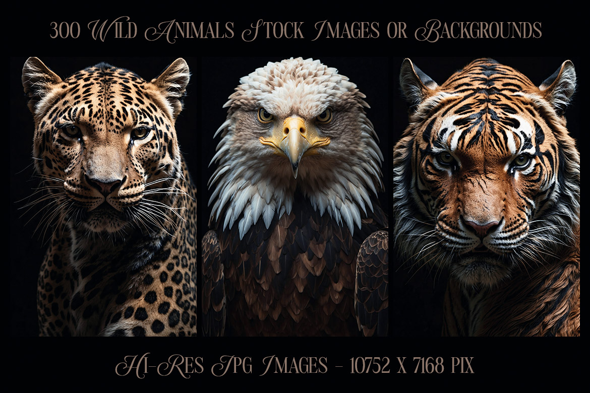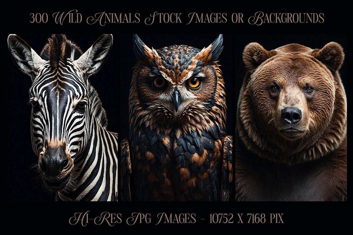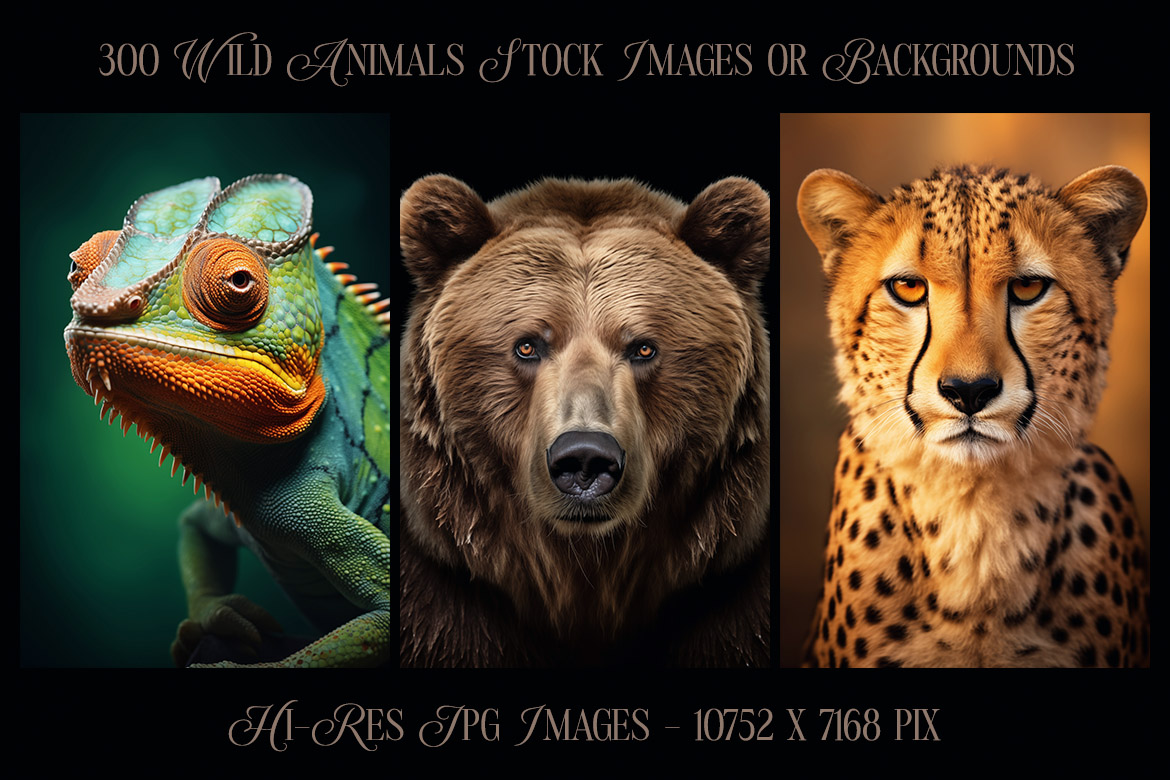 If you need something new in your stock images library or some cool background for your new project we have a unique bundle for you 🙂 With 300 wild animal portraits stock images or backgrounds you can create unique web or print designs.