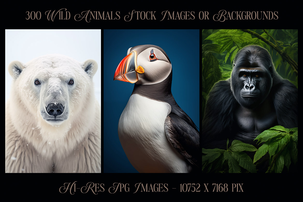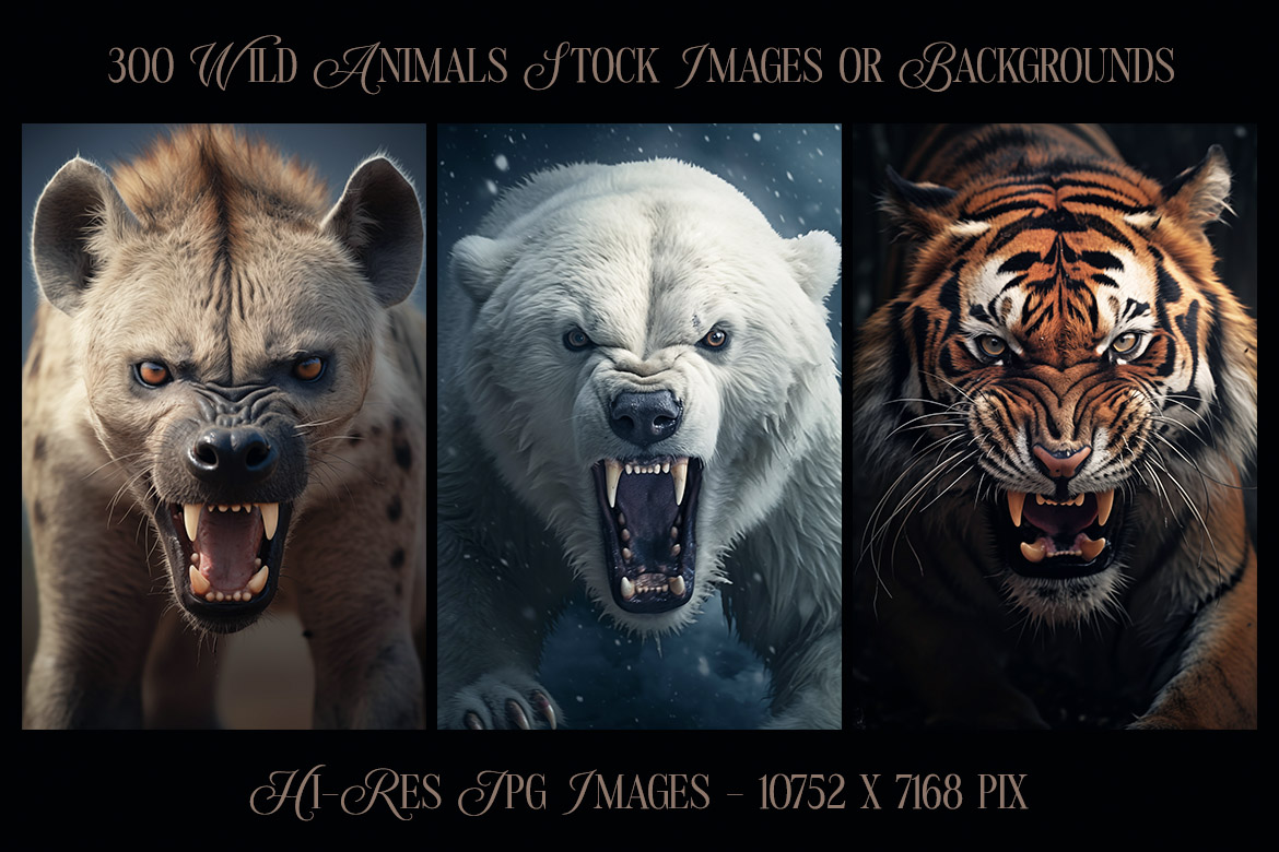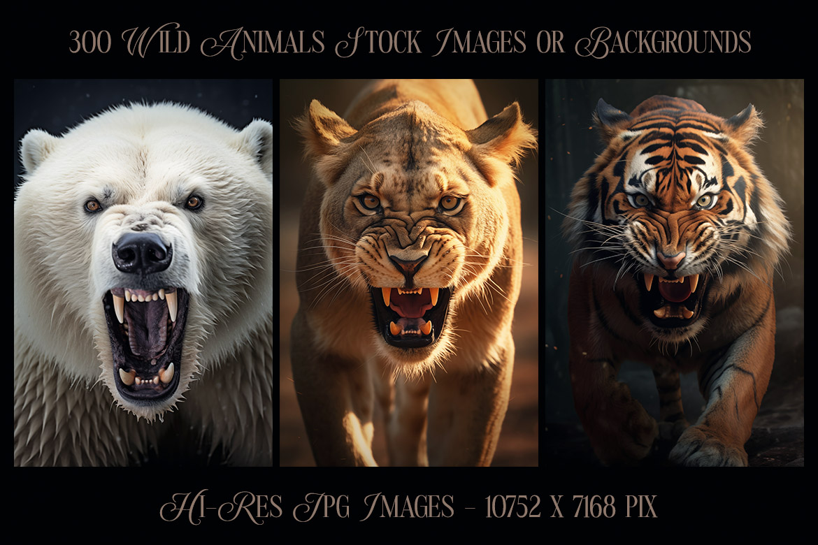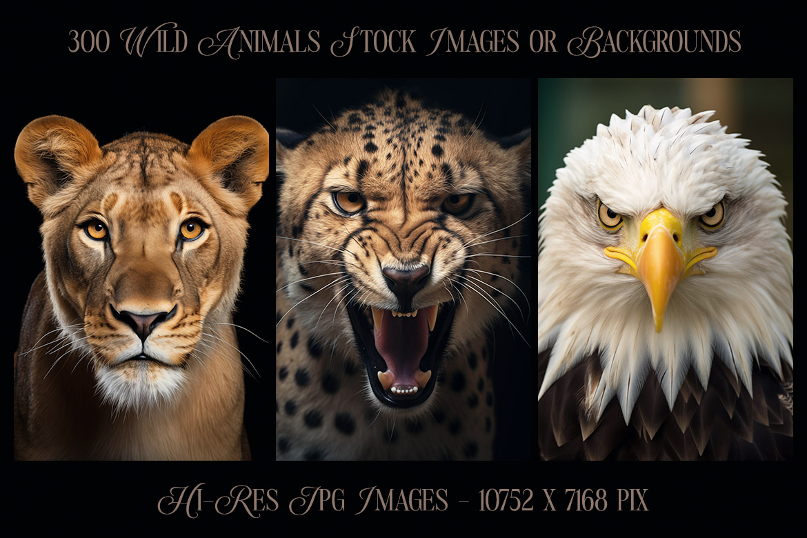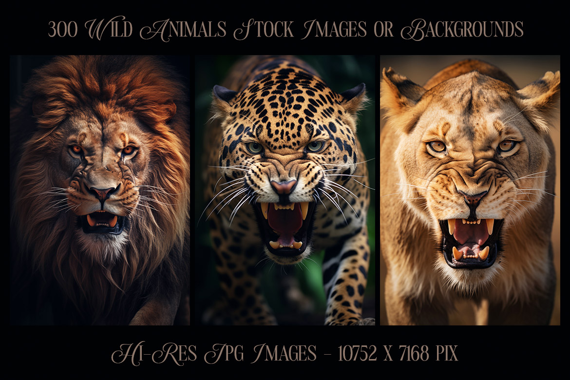 If you need something new in your stock images library or some cool background for your new project we have a unique bundle for you 🙂 With 300 wild animal portraits stock images or backgrounds you can create unique web or print designs.