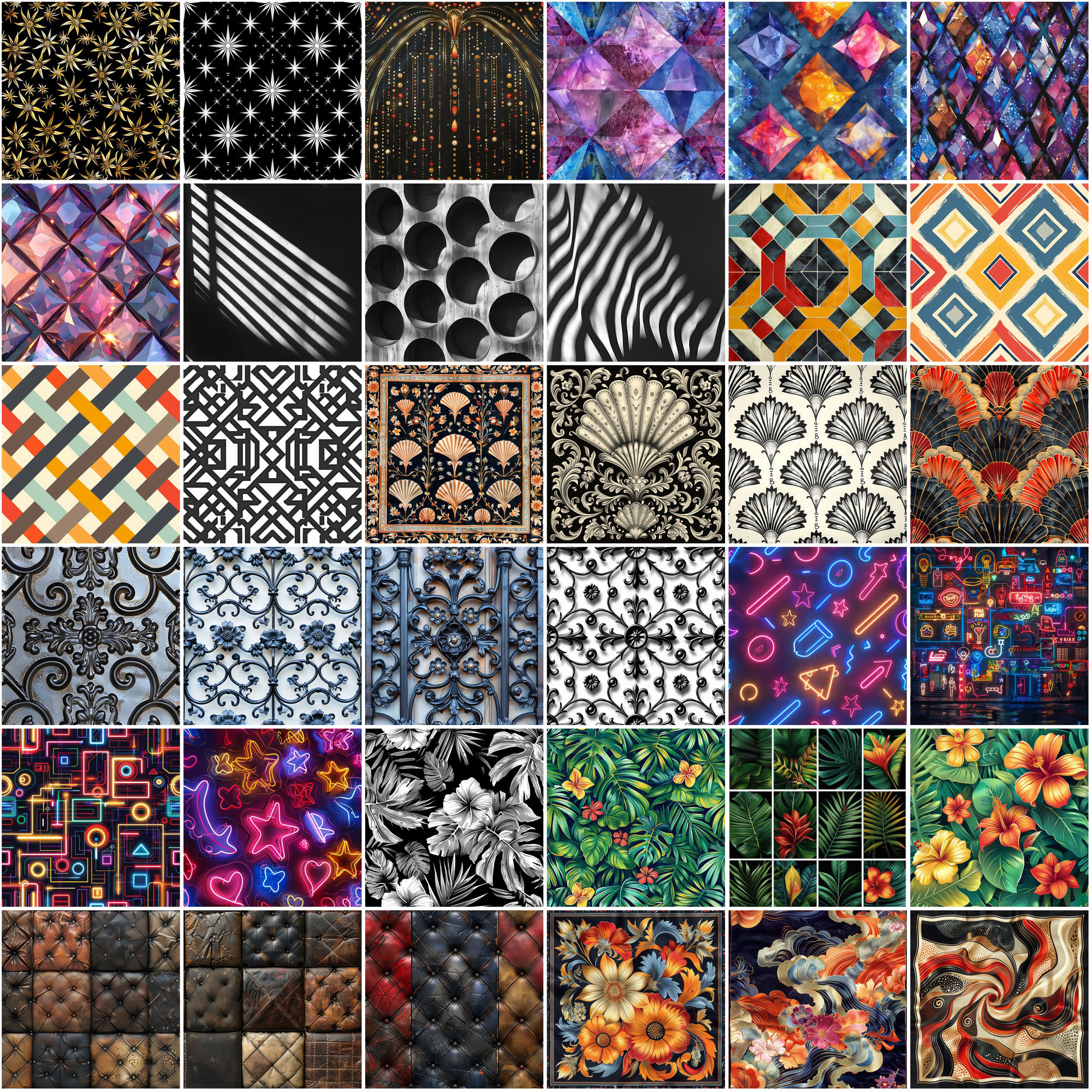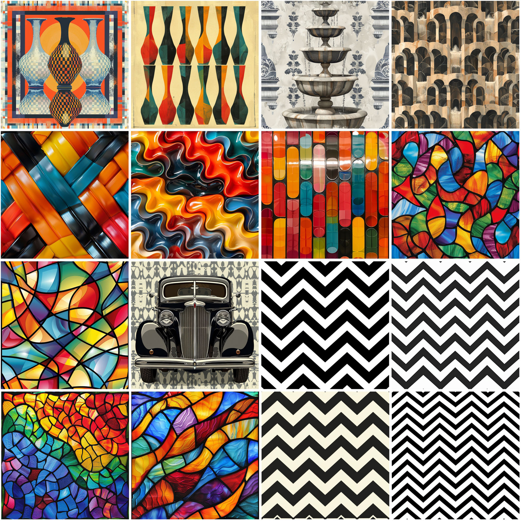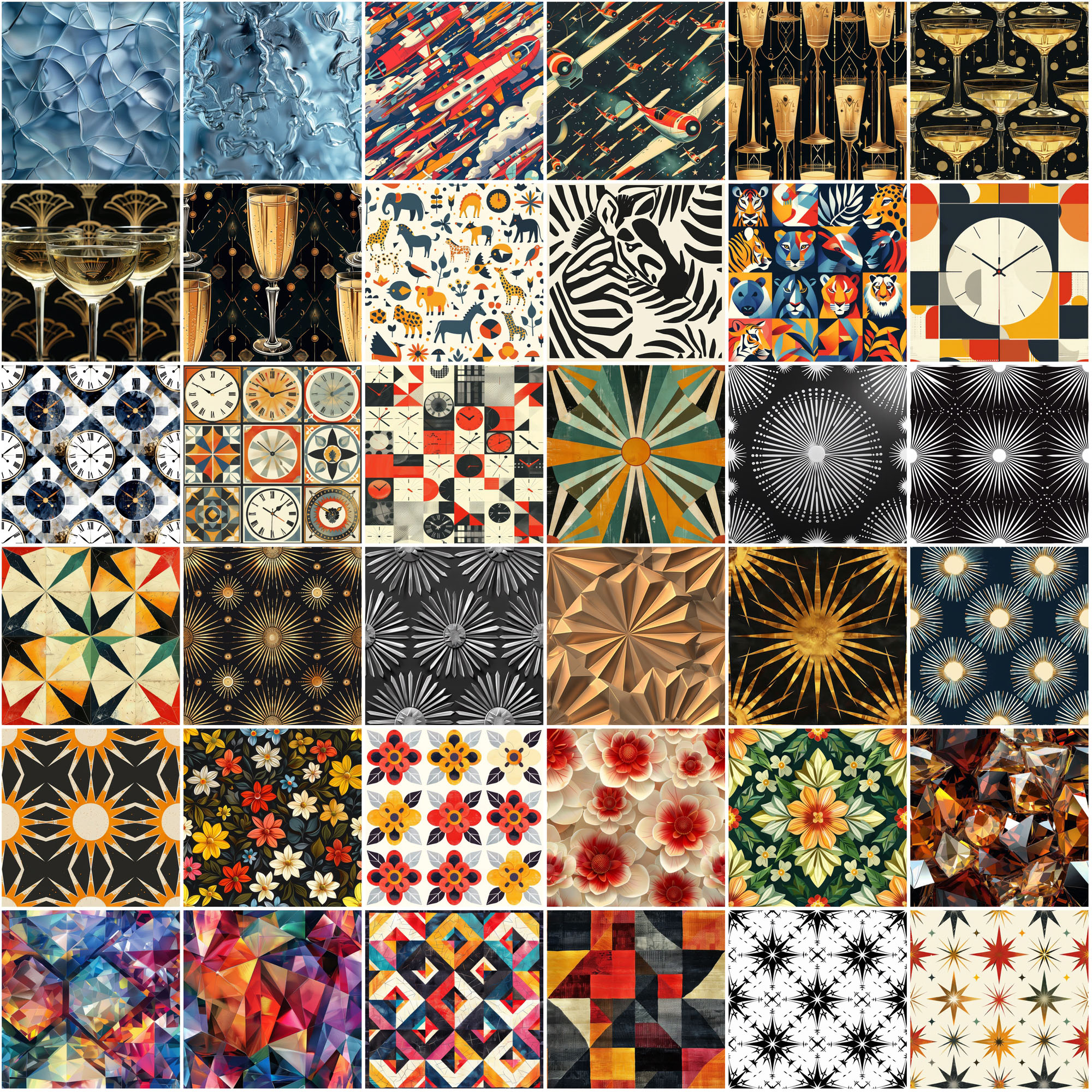 Step into a world of vibrant colors, abstract cityscapes, and geometric sunbursts with our exclusive collection of 340 seamless texture images. From Art Deco door handles to elegant terrazzo flooring and stylized ocean waves, this collection is perfect for creating infinite backgrounds that bring unique character to any print or digital project. With high-resolution textures (5000 × 5000 pixels), your designs will stand out with crisp, detailed quality, making them ideal for fashion, interior decor, digital media, and beyond.