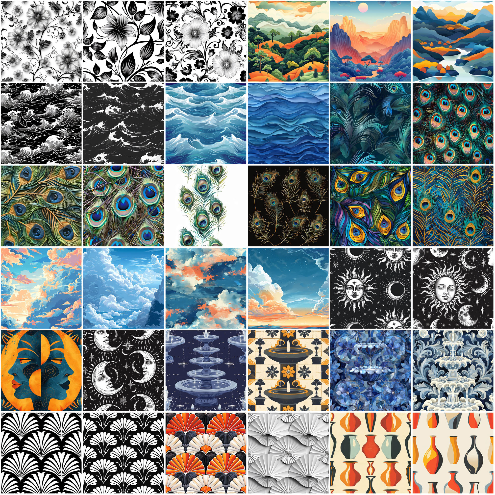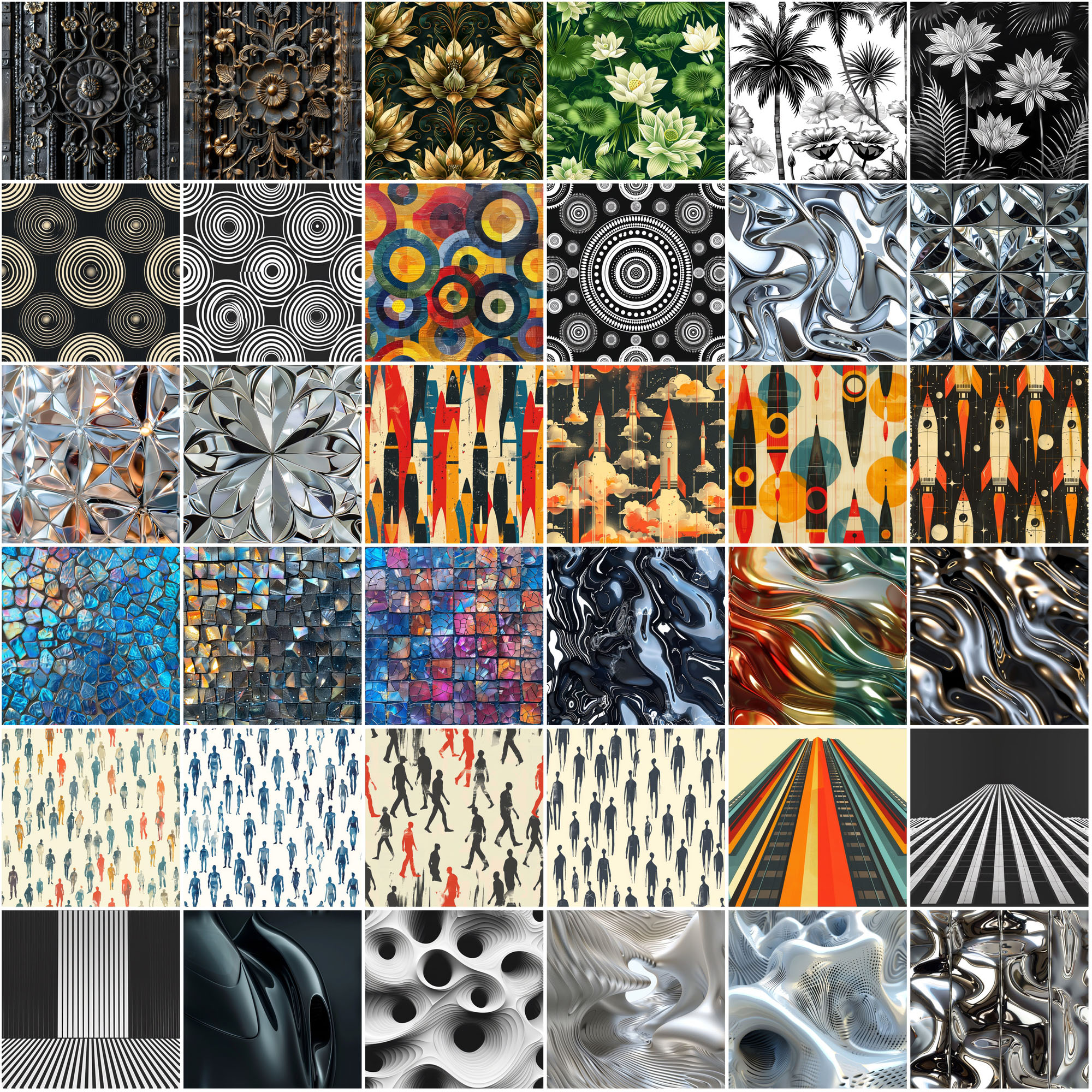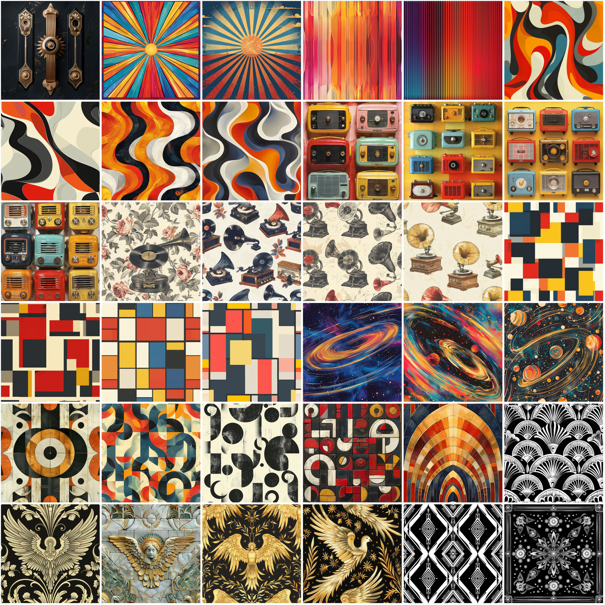 Step into a world of vibrant colors, abstract cityscapes, and geometric sunbursts with our exclusive collection of 340 seamless texture images. From Art Deco door handles to elegant terrazzo flooring and stylized ocean waves, this collection is perfect for creating infinite backgrounds that bring unique character to any print or digital project. With high-resolution textures (5000 × 5000 pixels), your designs will stand out with crisp, detailed quality, making them ideal for fashion, interior decor, digital media, and beyond.