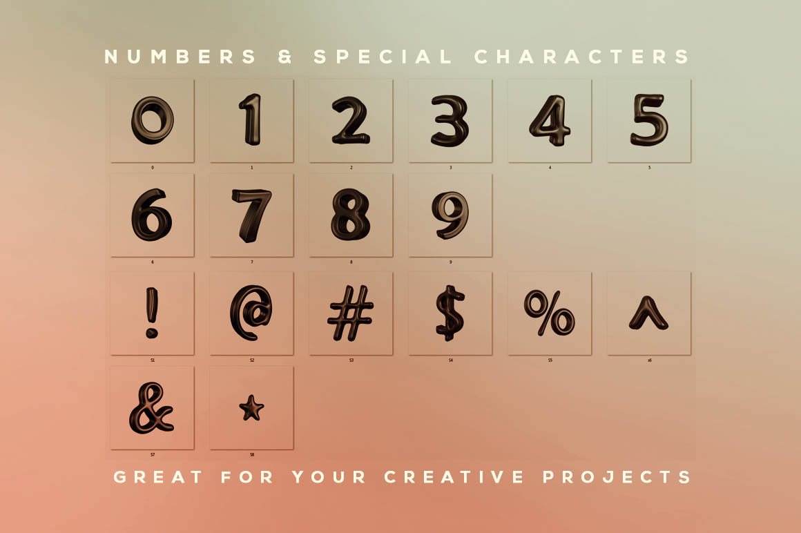 - 6 unique 3D lettering sets and custom fonts