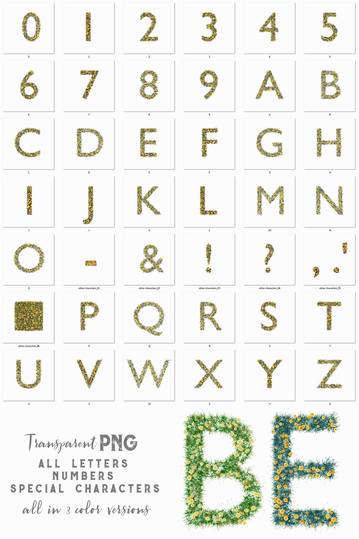 6. Summer Flower – 3D Lettering from MIIM Design Hi-res 3D grass or summer flower lettering renders (3000×3000 – but letter size is around 2000×2000). Great for your headers, posters, advertisments – any web or print projects. You’ll find here also layered PSD file with 10 effets (shadows, effects…) – just replace letter in smart object and you’ll see letter in all 10 effects.