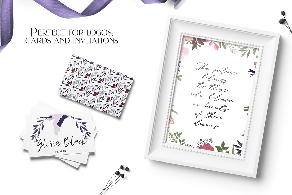 Be sure to click on the image to see all elements. This product was created to help you make your digital images even more beautiful and unique. This pack can be used to create anything as you wish, logos invitation cards, make scrapbooking, wedding cards, birthday cards, home decor, packaging holiday gifts, party decorations, print on fabrics and so much more. The pre-made Alphabets, frames, wreaths and also the separate elements can help you DIY your beautiful and special products such as wedding suites, branding, web design, stationery and more. Please read the product description carefully, and note that not all items, such as fonts and mock designs,photos in the product images are provided in the set. They are there to display the products and give examples of how to use it.