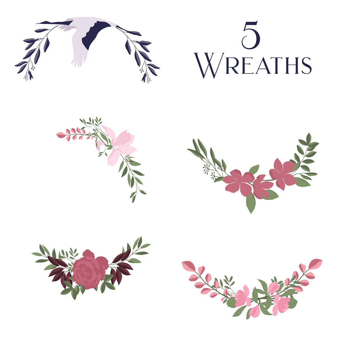 - 5 wreath flowers ( ai, eps, png with transparent background)