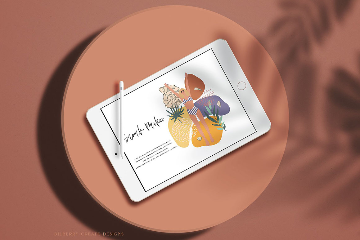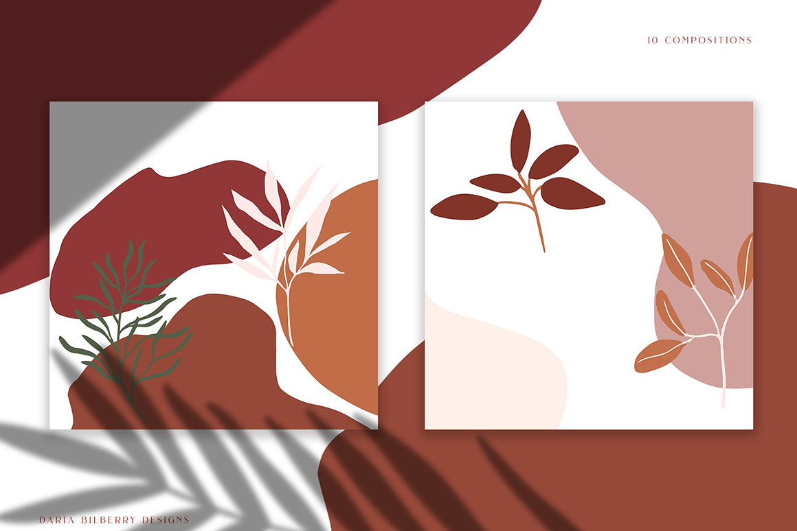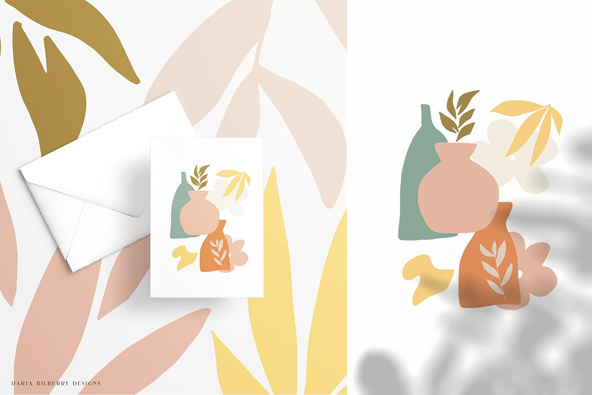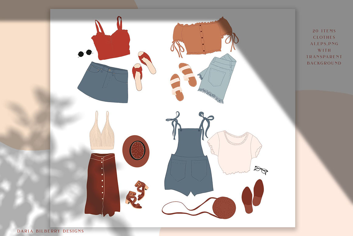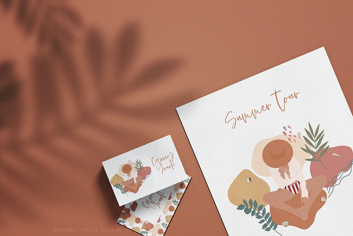 - 4 modern, minimalistic, summer & feminine style illustration sets