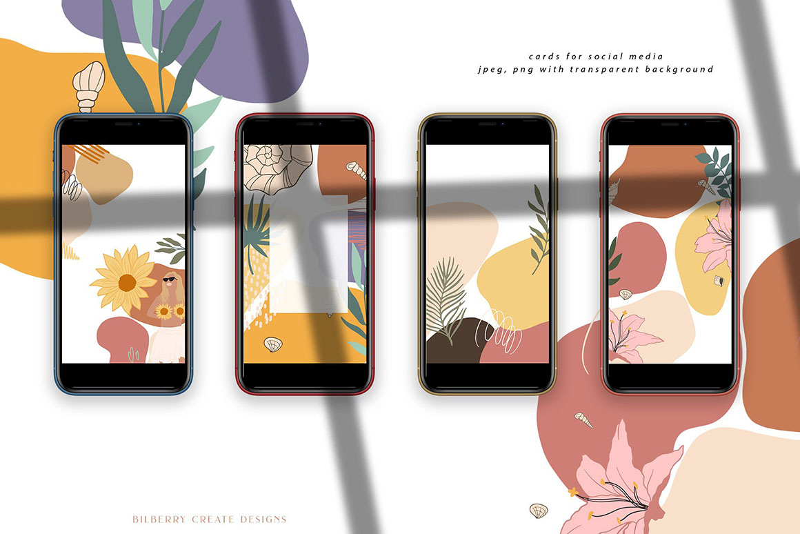 All these cool handdrawn graphics from BilberryCreate are ready for print or online use! MAIN USAGE: flyers, posters, greeting cards, branding, packaging, phone cases, bags and totes, wall art, fabrics, t-shirts, website backgrounds. Actually any place you love! Enjoy 😉