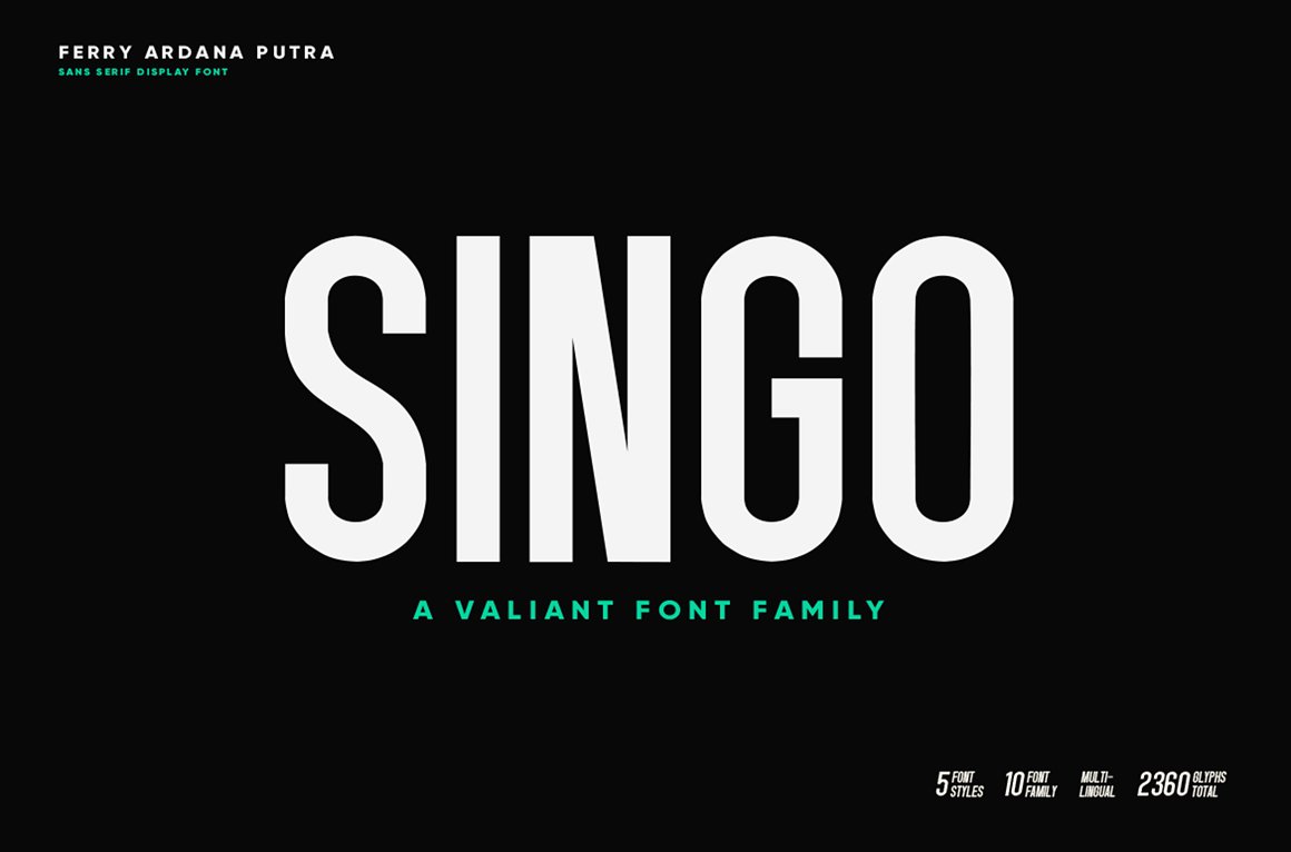 Singo is a valiant font family and extraordinary sans serif. Singo itself literally means Lion in Indonesia, which is the strong and gallant animal just like this typeface. It has a proportion of hard lines and smooth curves. Singo works great in any branding, logos, magazines, films, posters, websites, photography, t-shirts, etc.