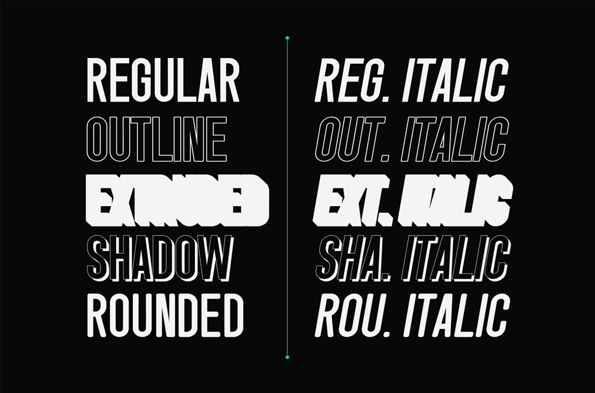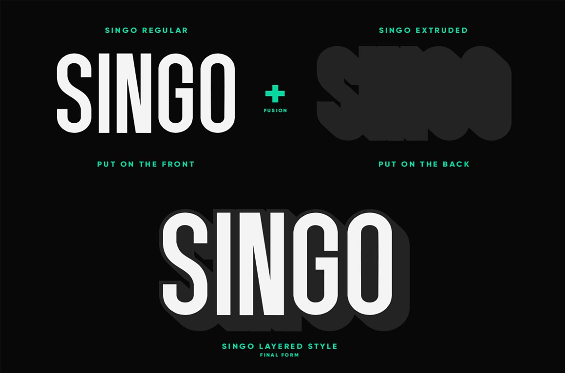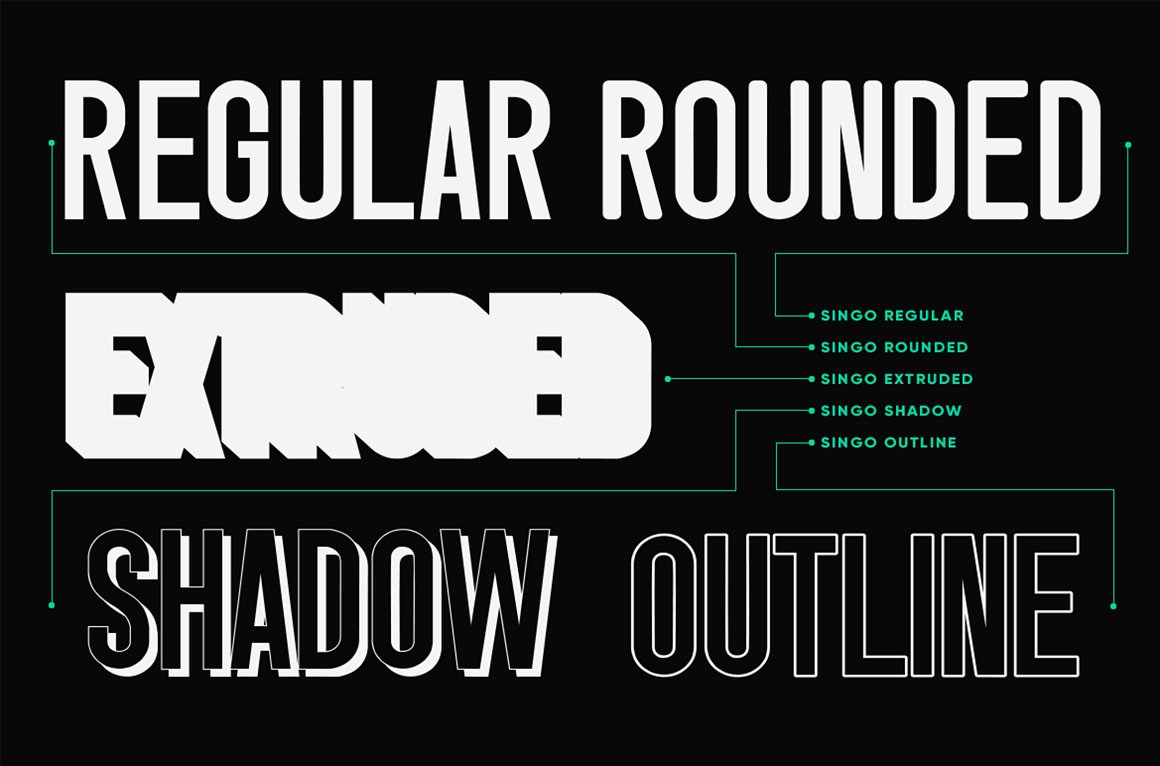 - Singo Extruded Italic (OTF, TTF & WOFF)