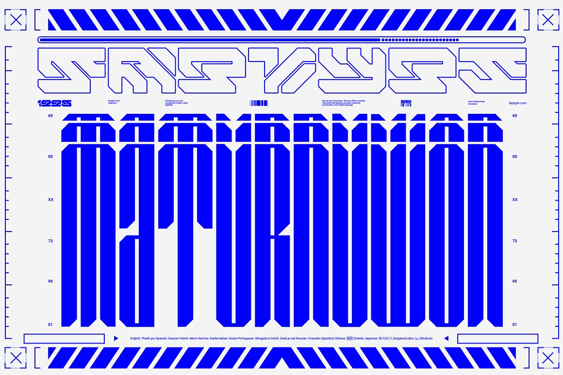 Introducing “Aero Flux”, the cyber mecha font that will take your designs to the next level. This font is designed with a perfect blend of modern and squared feel, giving it a unique and futuristic aesthetic that is perfect for a wide range of applications. The bold and sleek design of Aero Flux makes it an ideal choice for logos, headlines, and branding materials. It’s all-caps design with punctuation, numerals, and foreign support allows for flexibility in creating unique and engaging visual designs. Aero Flux’s squared feel makes it perfect for projects that require a strong and sturdy look, such as designing video game or movie titles, product packaging, or creating futuristic posters. This font’s bold, industrial look is perfect for capturing the essence of the mecha genre, with its sharp angles and futuristic design. The squared feel of Aero Flux adds a sense of strength and solidity to your designs, making it the perfect choice for projects that require a bold, commanding look. Moreover, Aero Flux’s industrial, mecha-modern design makes it the perfect font for creating digital interfaces and user interfaces (UIs), especially those that require a futuristic or high-tech feel. In summary, Aero Flux is a highly versatile font that is perfect for a wide range of applications, from logos and branding to digital interfaces and futuristic posters. With its modern, squared feel and unique design, Aero Flux is the perfect font to add a touch of futurism to your projects and captivate your audience.