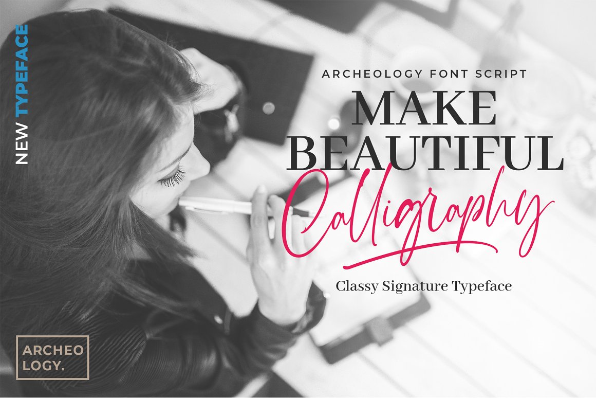 Congratulations! You find something very extraordinary and fashionable. It’s Archeology Font Script This casual-chic, hand-lettered script font is perfect for styling logos, stationery, social media, websites and so much more!