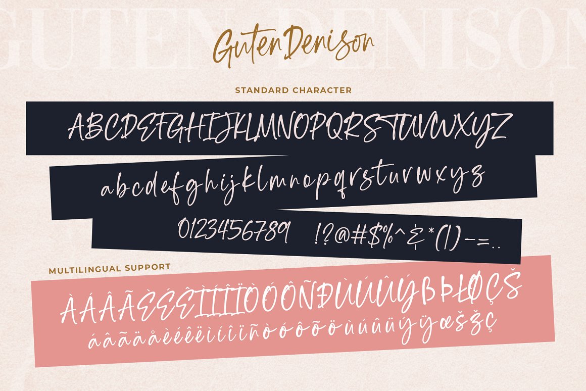 Guten Denison Script This casual-chic, Hand-lettered script font