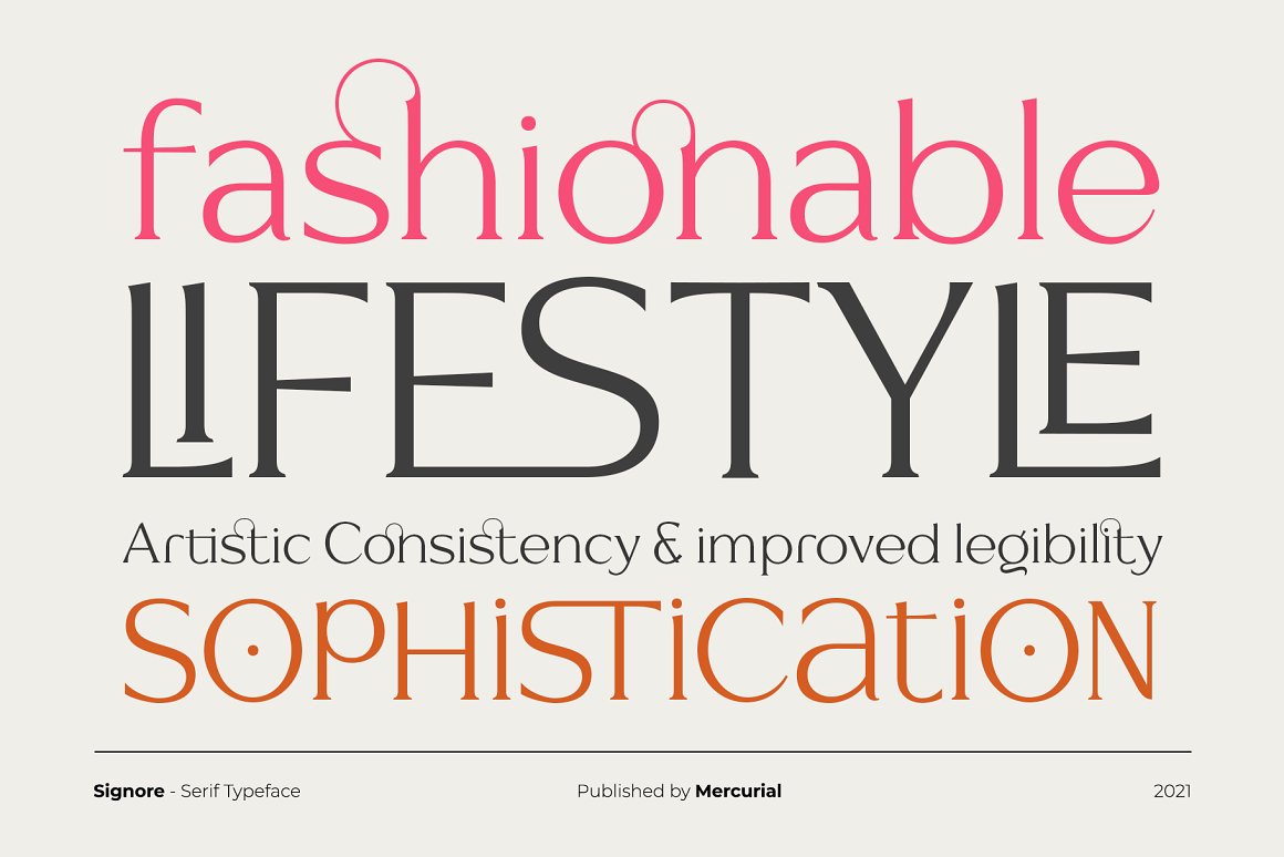 Signore is a serif typeface made with the desire for a quality, elegant, classy font that can still be used in all design needs. Wrapped with a modern yet unique character with a style that can mix & match in 3 model variants.