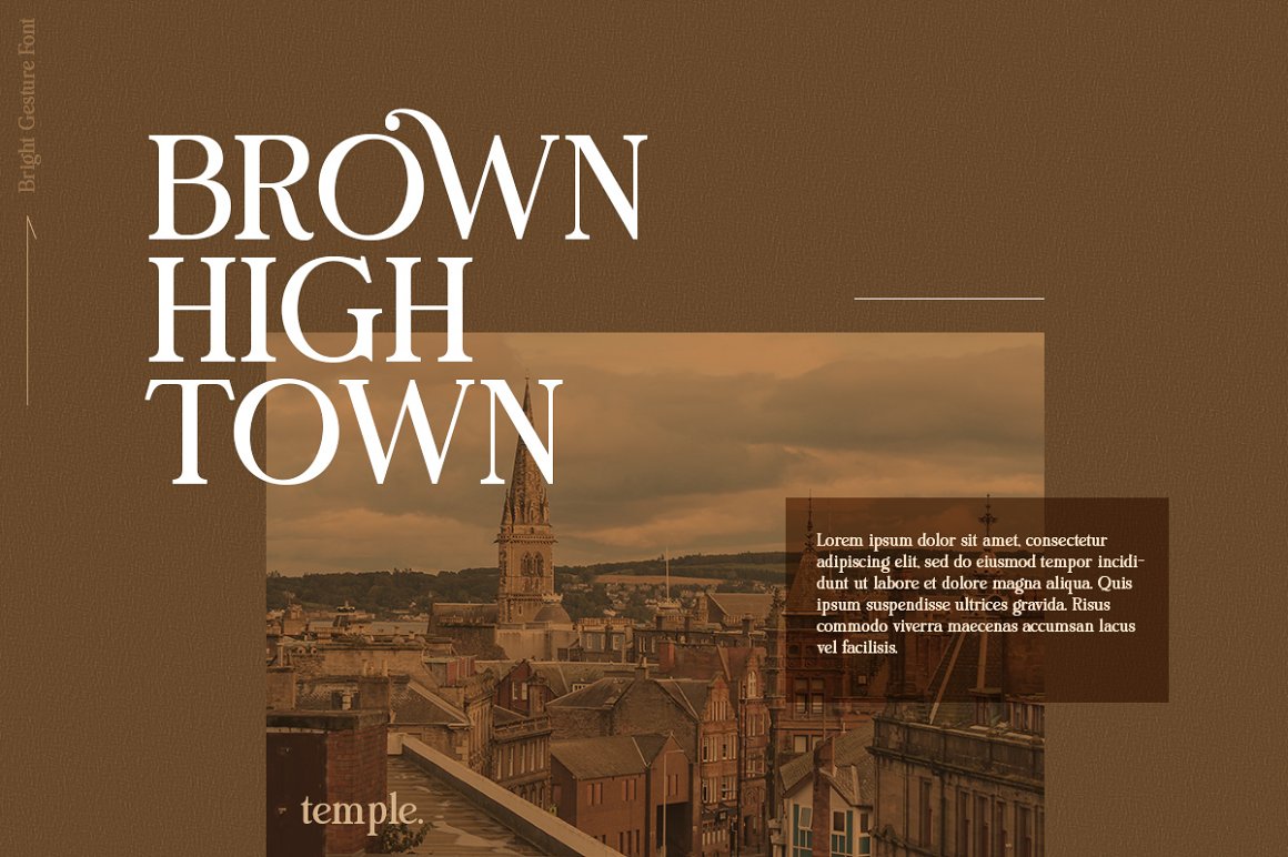 Introducing, Bright Gesture – A Modern serif font with swashes. The stylistic alternates and ligatures make this font event more unique and stands from the crowd. This font perfectly made to be applied especially in logo, and the other various formal forms such as invitations, labels, logos, magazines, books, greeting / wedding cards, packaging, fashion, make up, stationery, novels, labels or any type of advertising purpose.