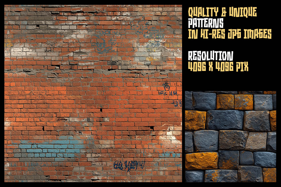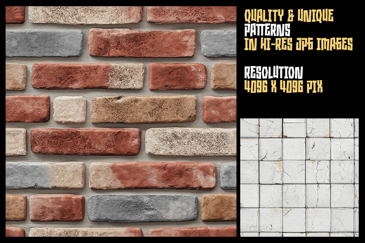 This collection of 400+ creative style brick, stone, graffiti or grunge wall & other street style patterns brings your projects realistic textures they’ve been looking for. All these patterns are well-suited to a range of design projects. In particular, we think these patterns will be ideal for seamless textures, backgrounds and of course web graphics.