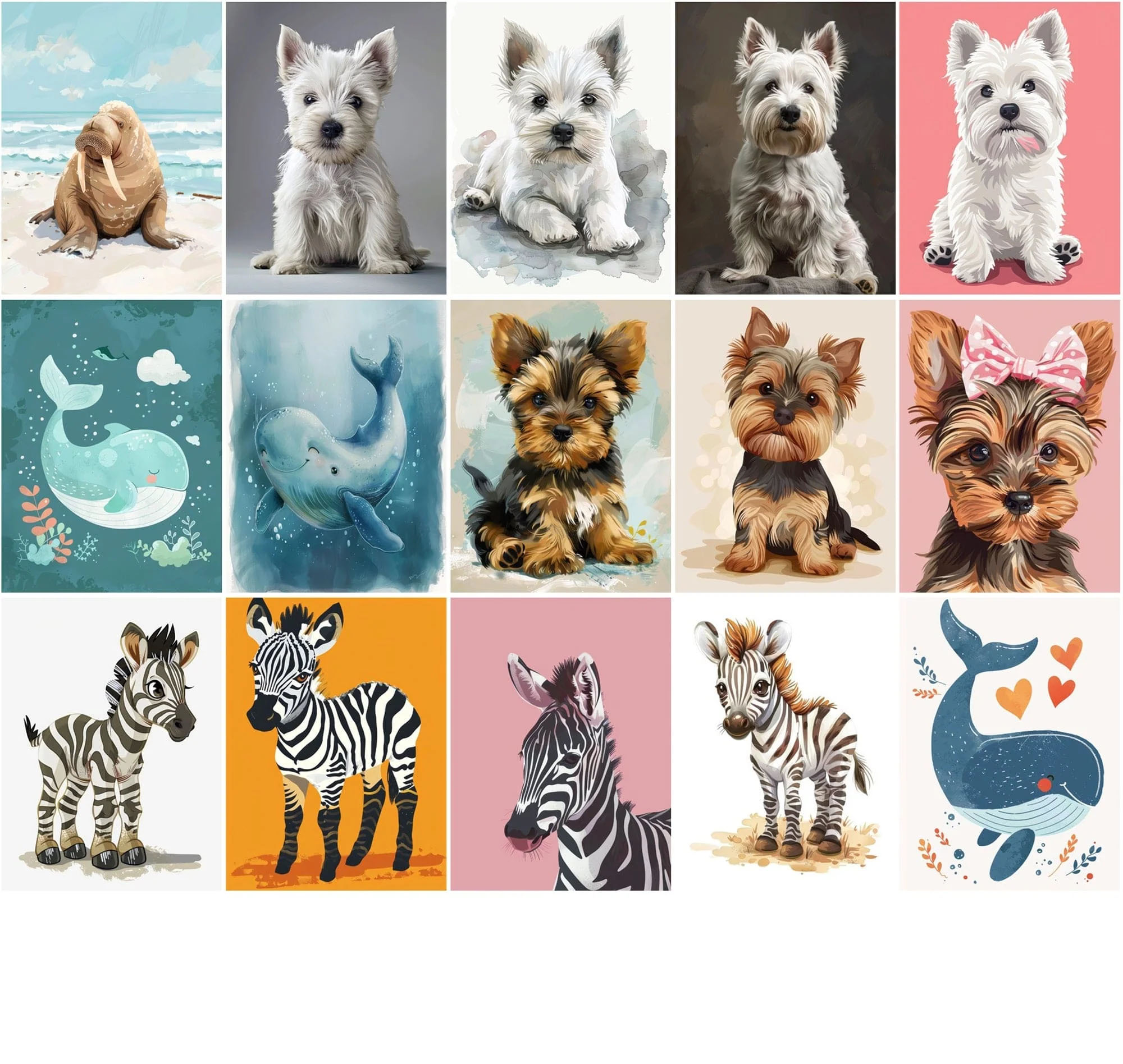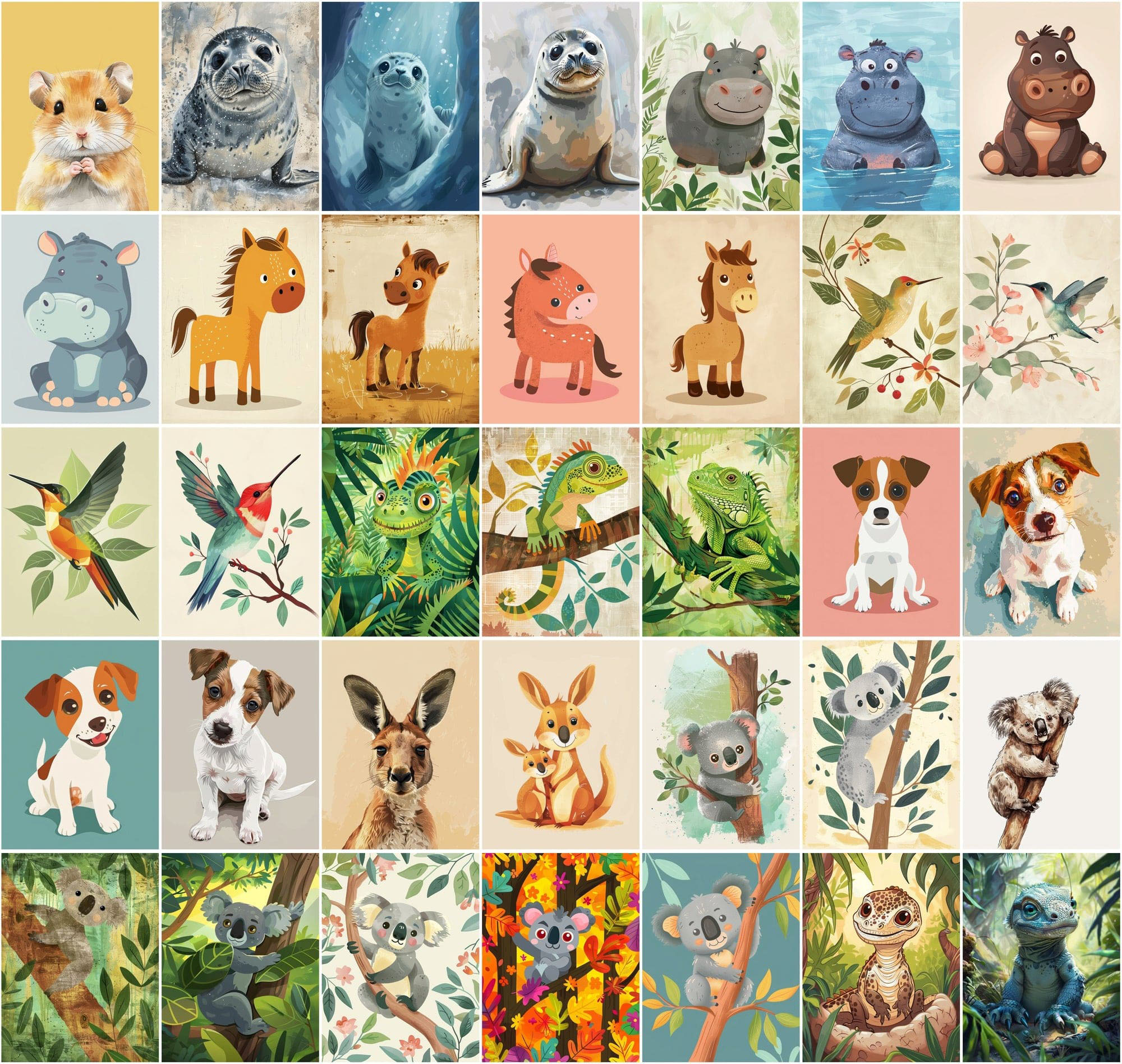 Fill your child’s room with joy and imagination with this delightful collection of 435 colorful animal nursery art prints. Featuring everything from cuddly baby elephants and playful pandas to majestic lion cubs and curious otters, these high-resolution JPG images (4640 x 6160 px) bring the magic of the animal kingdom to life. Perfect for creating educational and inspiring gallery walls, this collection is ideal for nurseries, kids’ rooms, classrooms, or creative businesses. The soft, vibrant artwork sparks wonder and learning, making it a charming addition to any space. Each image is print-ready and includes a Commercial License, so you can use them freely in personal projects or professional designs. Instantly downloadable, these prints are ready to brighten up any environment.