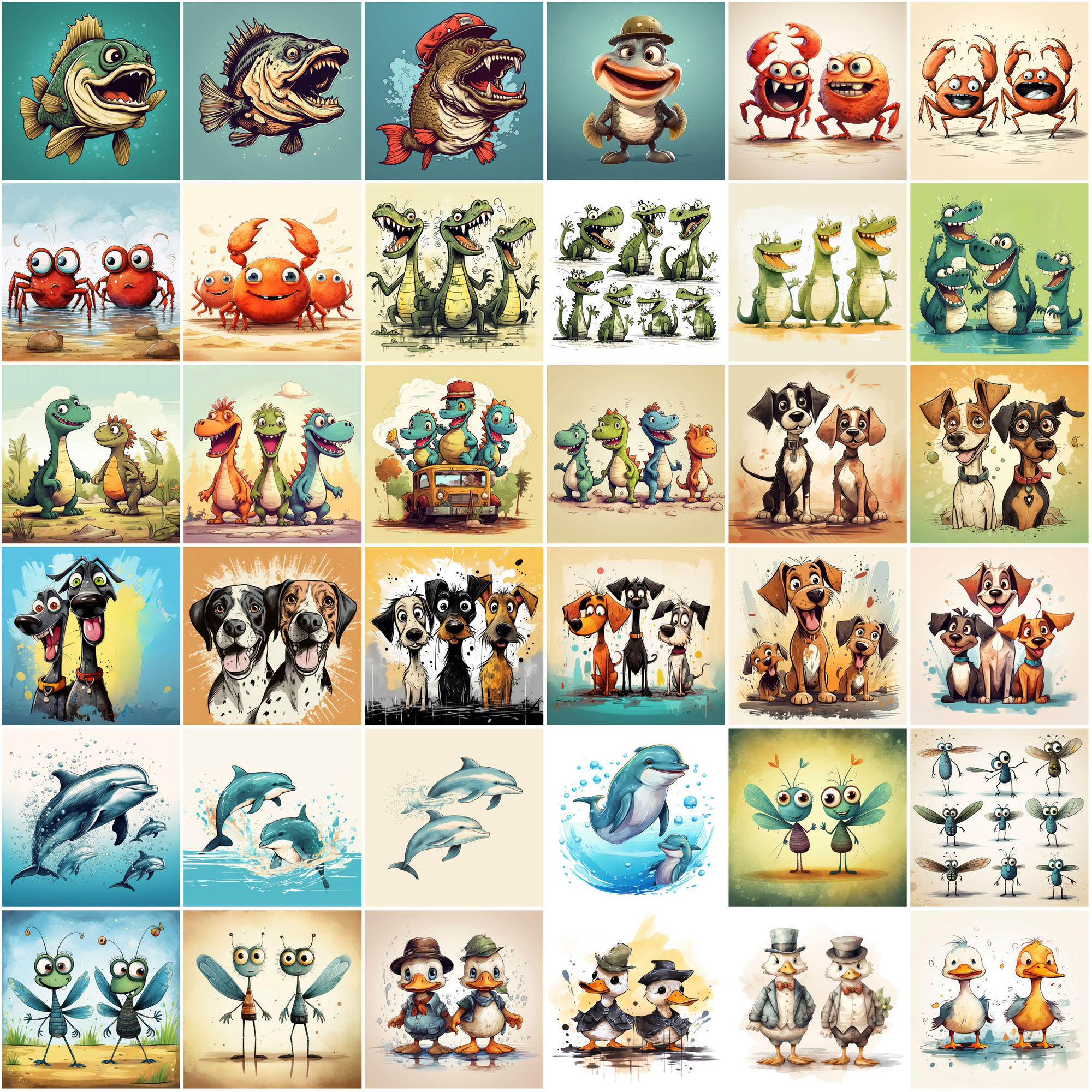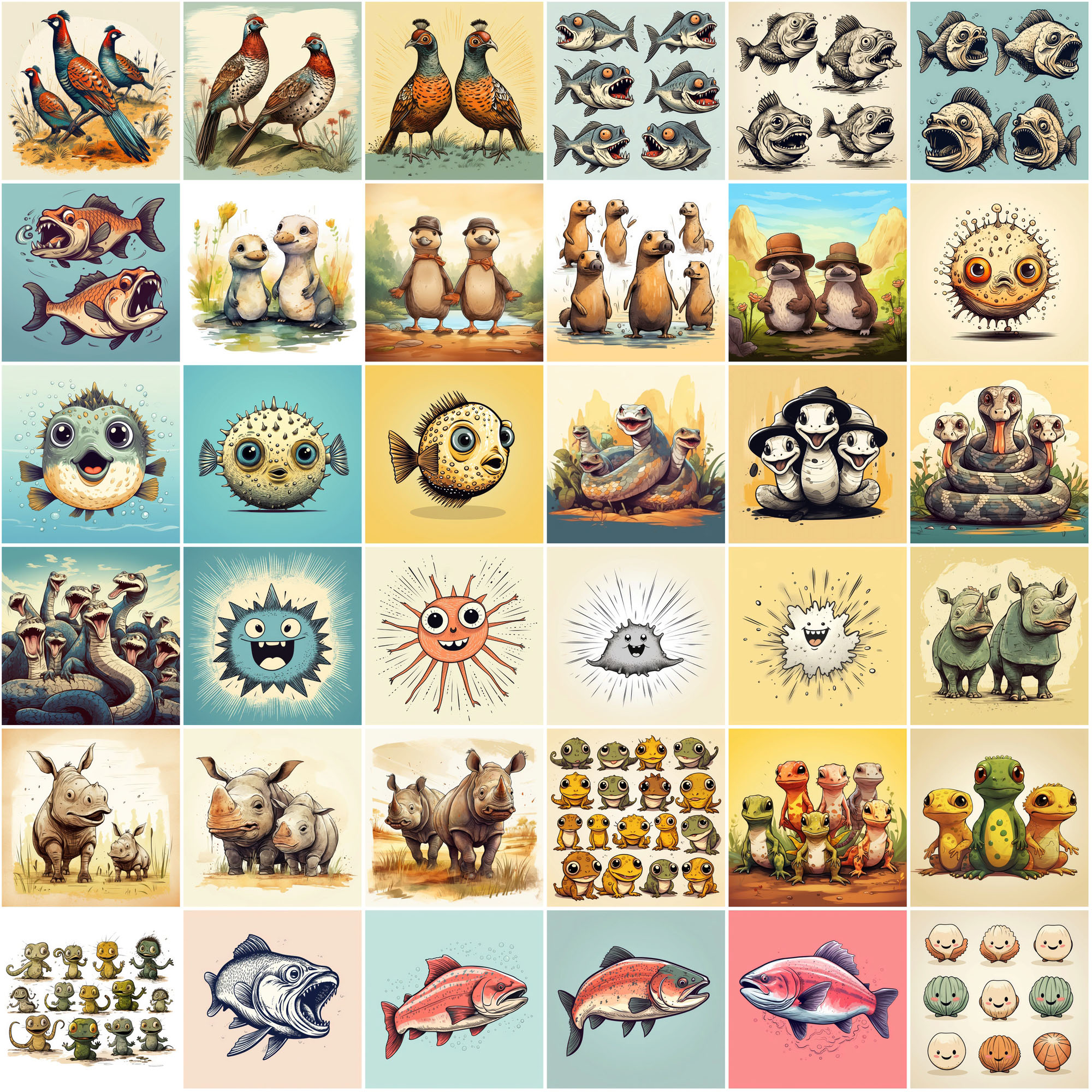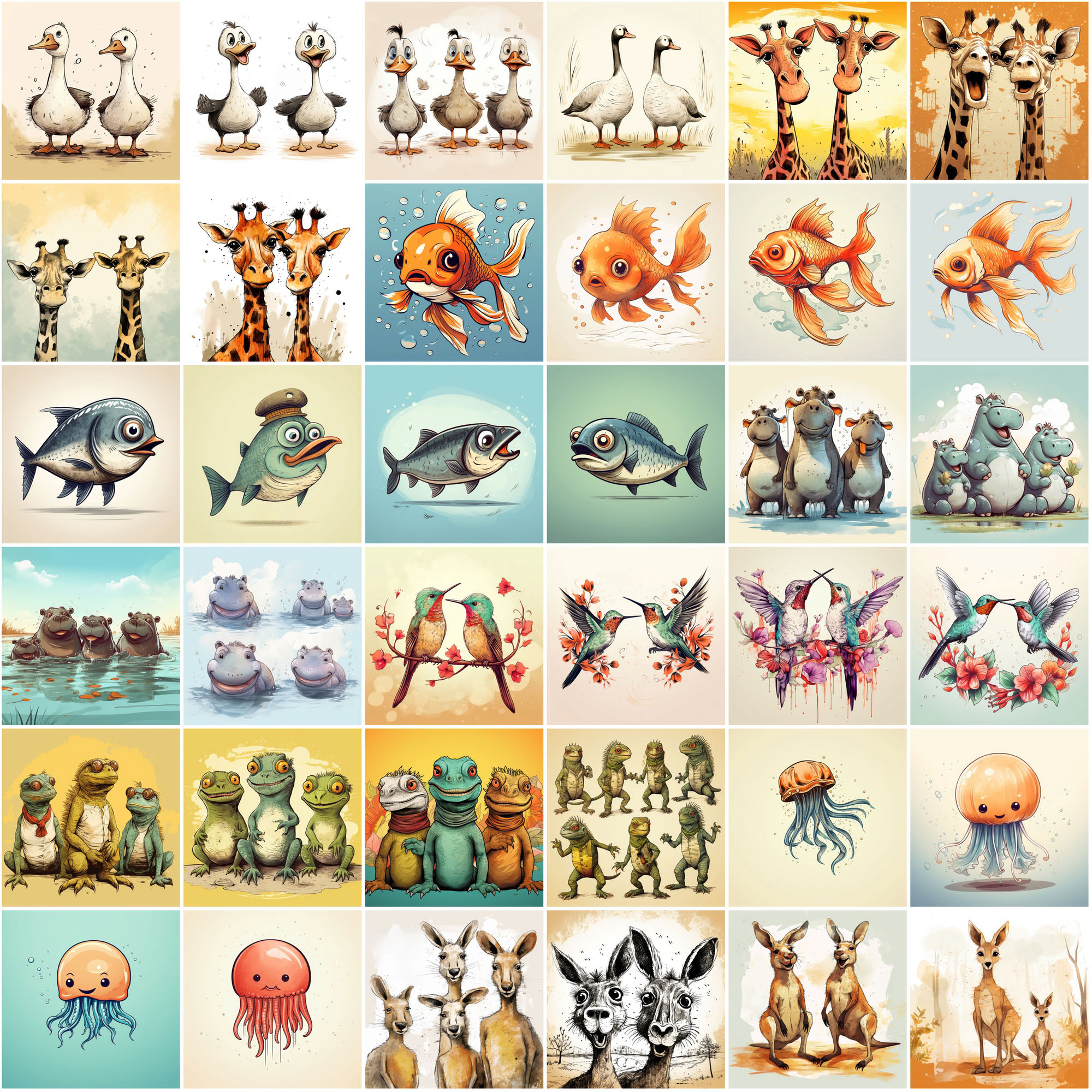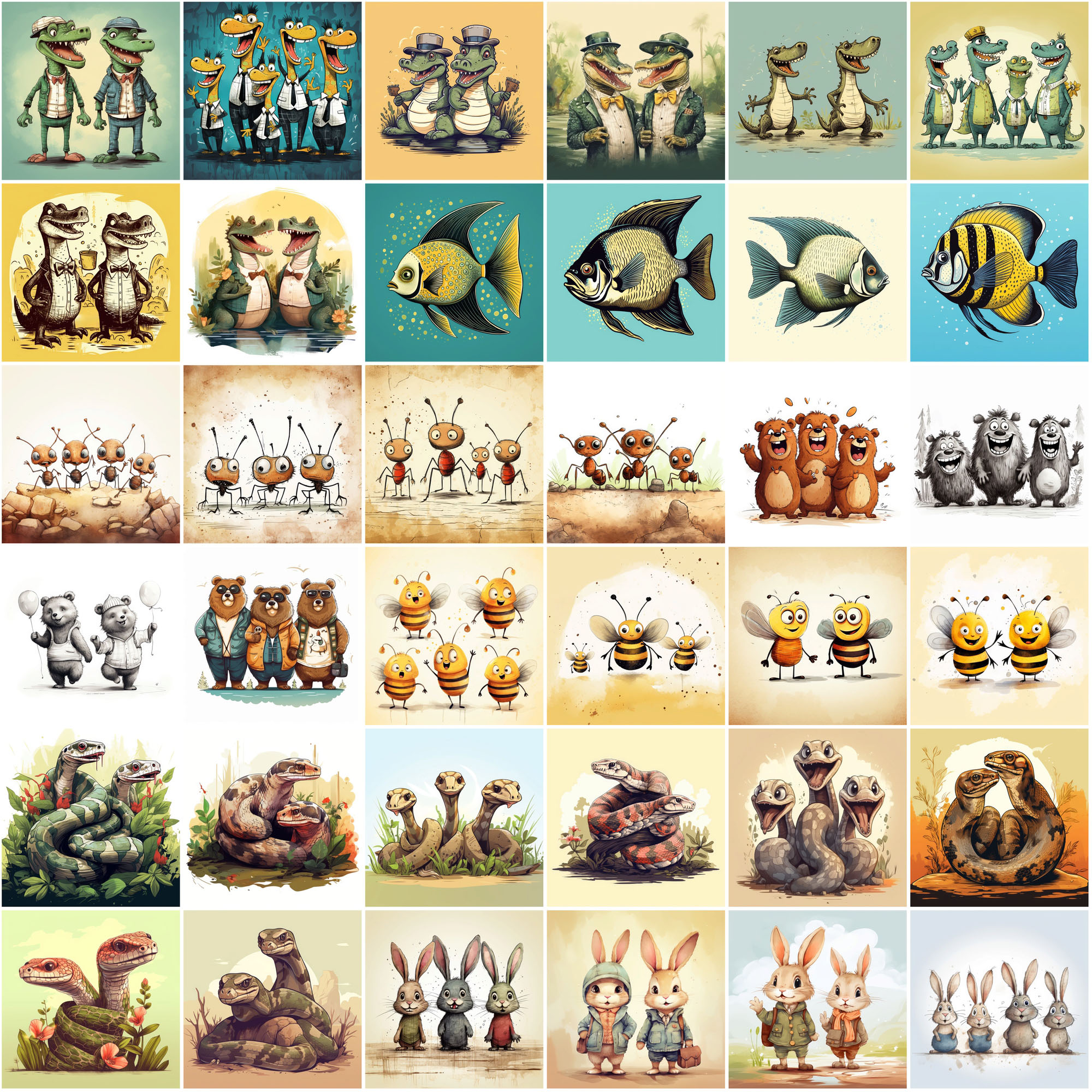- 440 High-Quality JPG Images – Each one features a whimsical, vintage-style animal illustration full of humor and character.