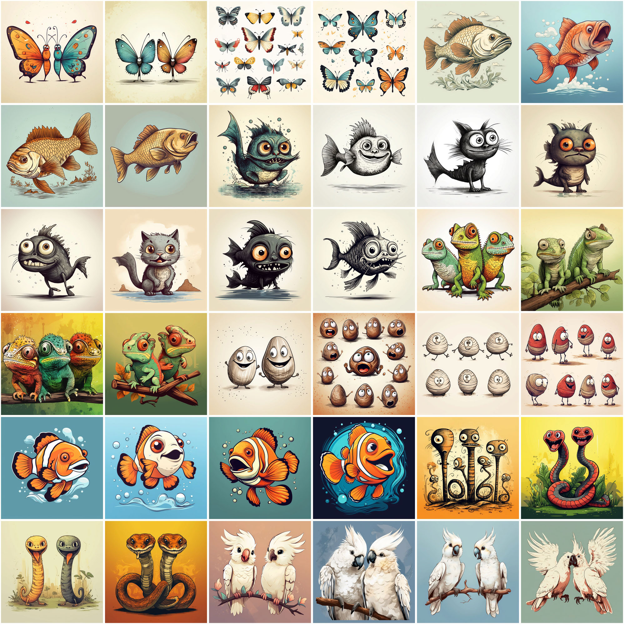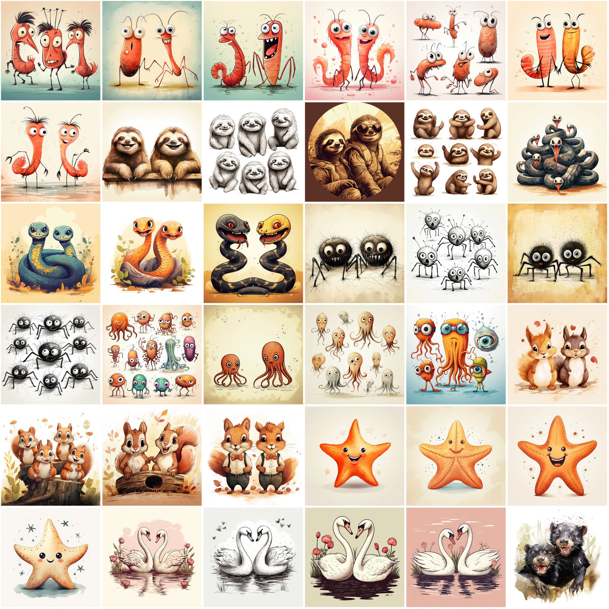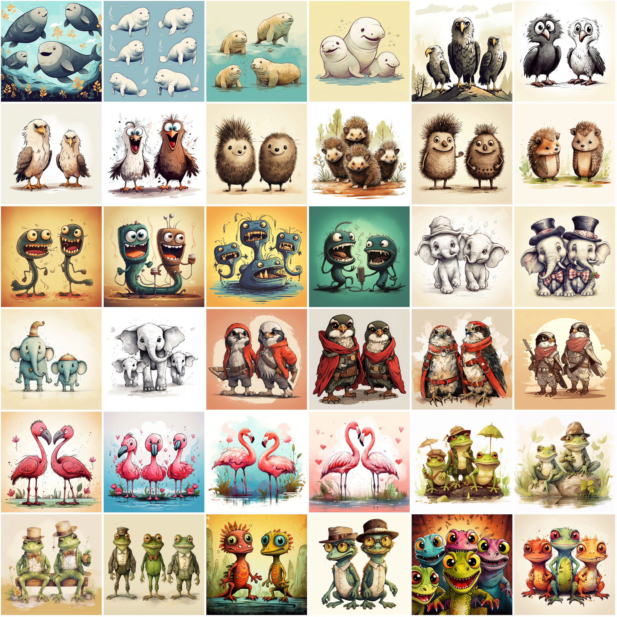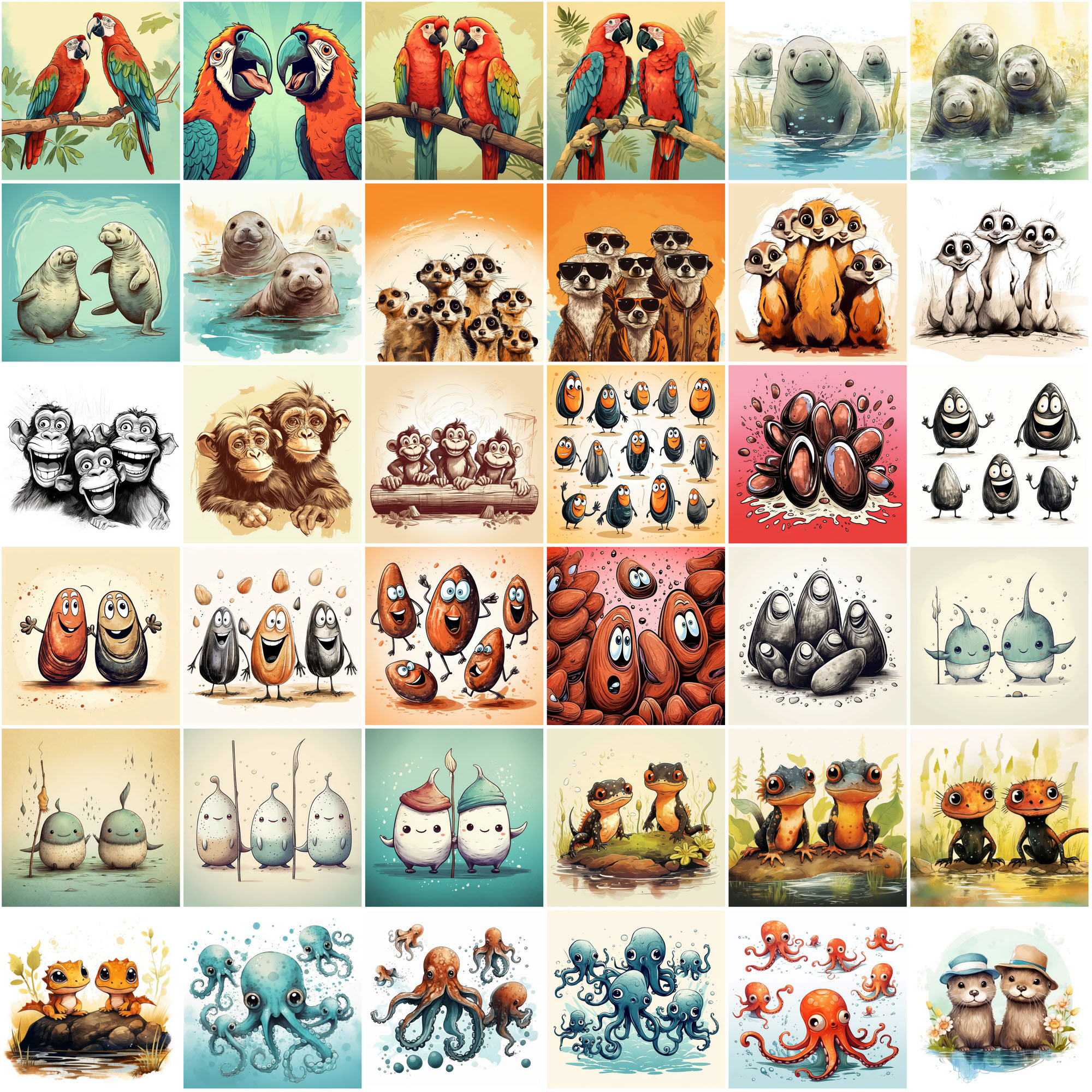 - 440 High-Quality JPG Images – Each one features a whimsical, vintage-style animal illustration full of humor and character.