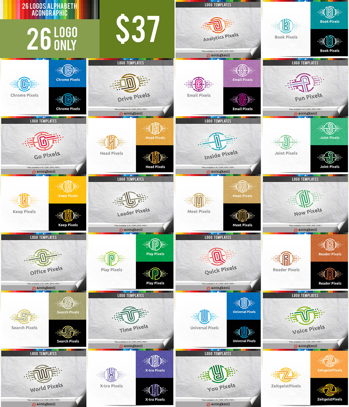 If you don’t have the time and budget to create a custom logo, this unique vector bundle is just for you! Bundle features 2390+ graphics and shapes from Acongraphic which offers you a wide variety of options at one incredibly low price. All these graphics are in 6 file formats: AI, CDR, EPS, JPG, PNG & PDF. So take a look at all previews and enjoy 😉