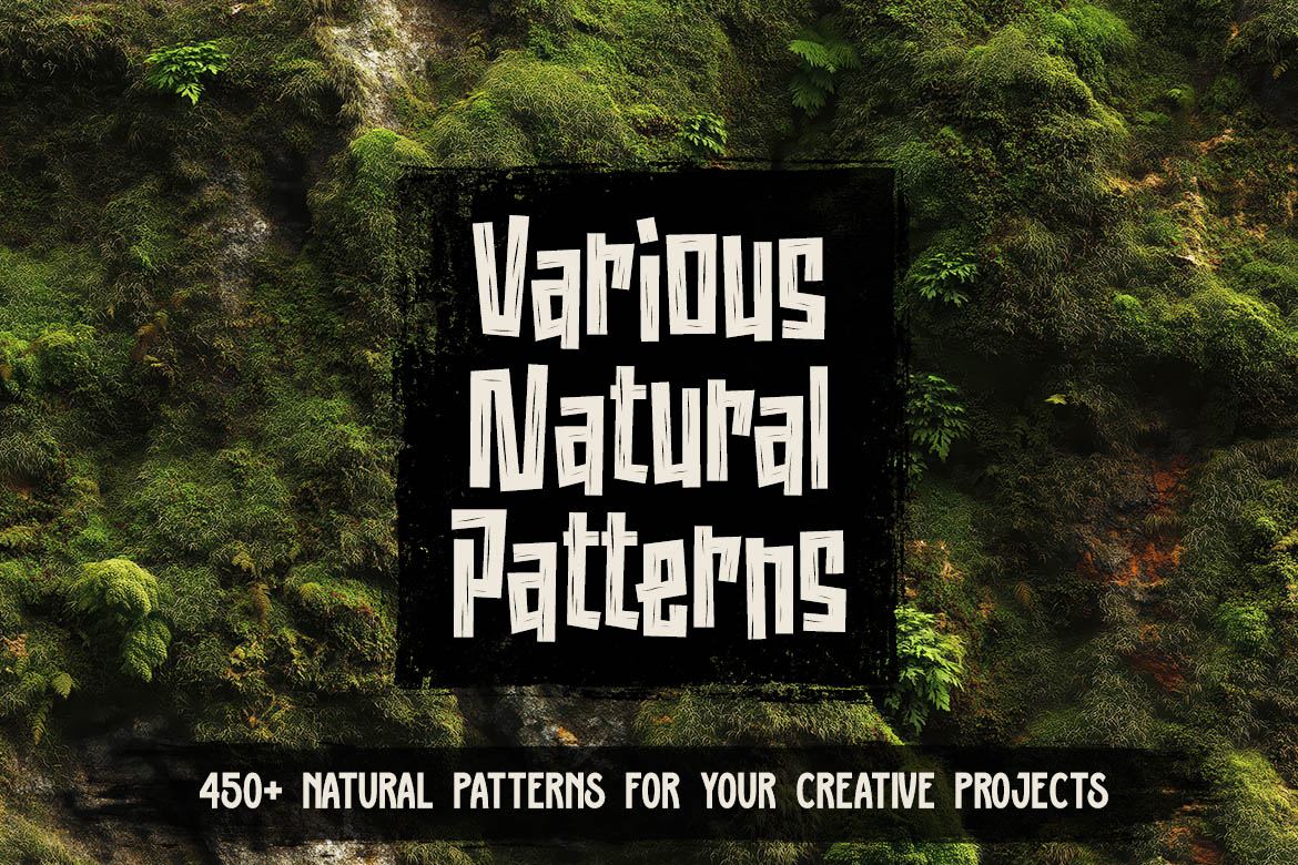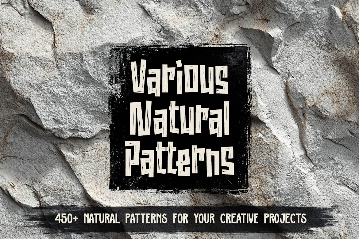 This collection of 450+ creative style stone, water, ice, snow, grass & other natural patterns brings your projects realistic textures they’ve been looking for. All these patterns are well-suited to a range of design projects. In particular, we think these patterns will be ideal for seamless textures, backgrounds and of course web graphics.