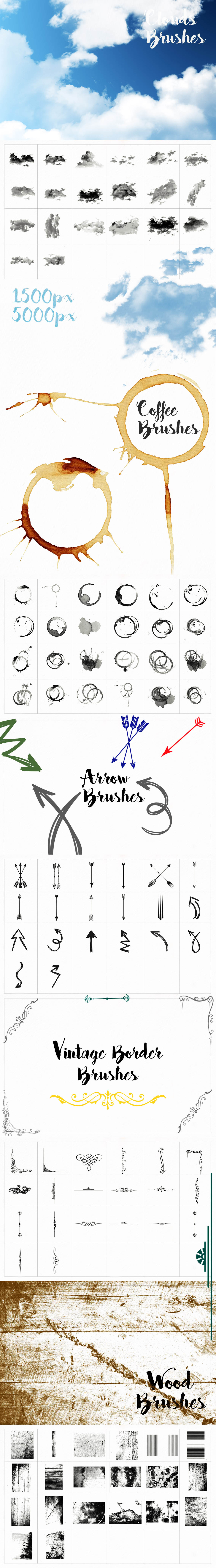 You’ll find 450+ brushes in this bundle. In 22 sets and all in high resolution between 1500px and 5000px , and extremely detailed. Enjoy 🙂