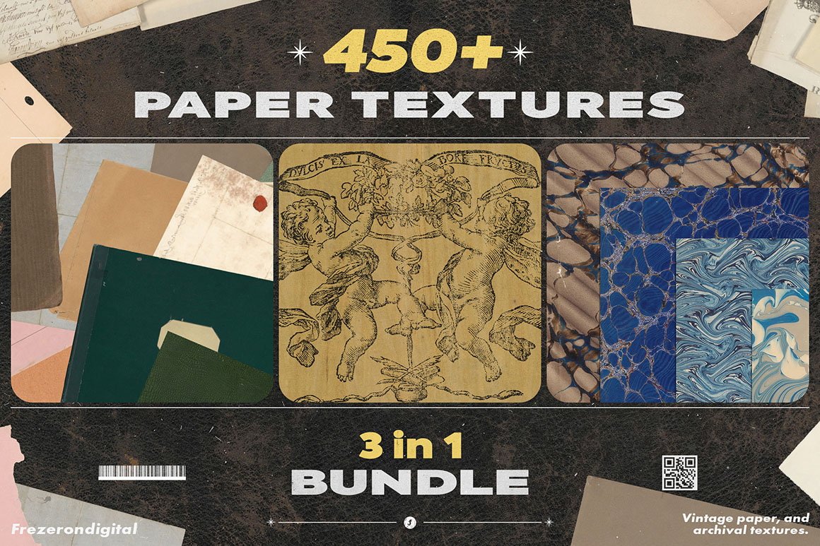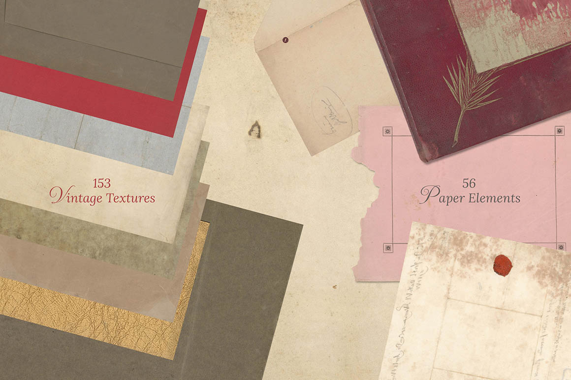 - 3 vintage paper style texture sets – 450+ textures