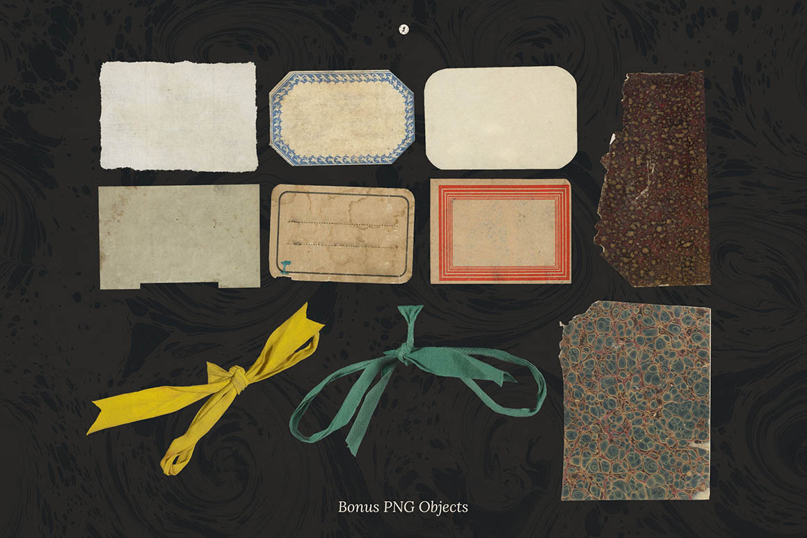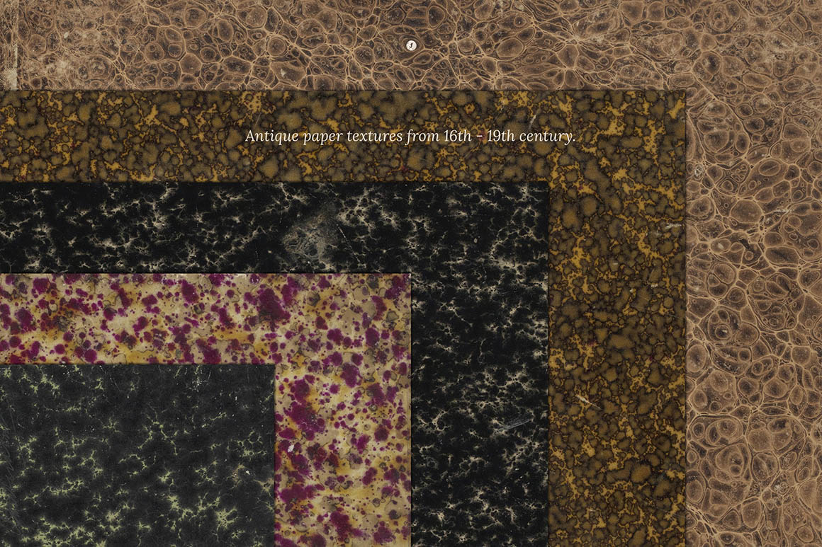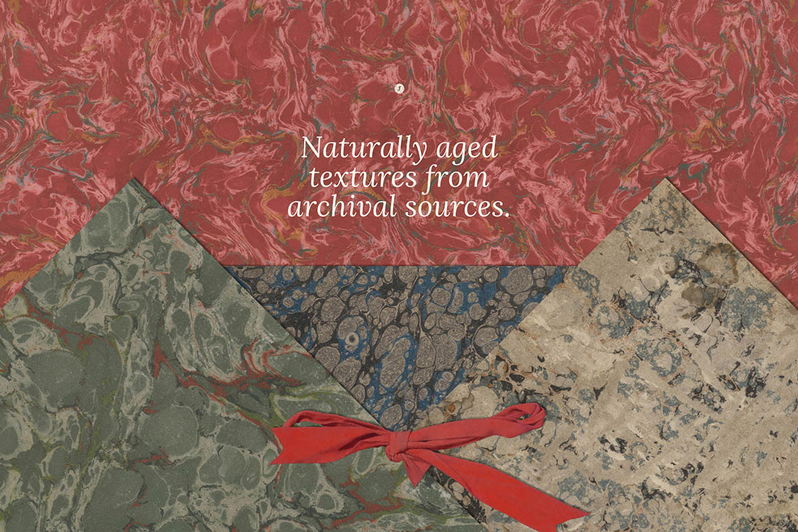 The 450+ Vintage Paper Textures Bundle is a rich digital archive of over 450 high-resolution assets capturing the authentic beauty of 16th–20th century paper craft. This carefully curated collection includes 112 antique paper textures (plus vintage book covers), 133 genuine scanned marbled papers with natural age-wear and ink character, and 153 historic paper, parchment, leather, and linen textures — all delivered at 5000x3500px for crisp, detailed results. You’ll also receive 76 PNG objects featuring bows, paper pieces, letters, wraps, envelopes, and journals, perfect for layering and collage work. From the subtle imperfections of handmade vellum to richly patterned marbled sheets and timeworn wraps, this bundle brings depth, grit, and old-world elegance to book covers, branding, scrapbooking, editorial layouts, and any project that calls for a timeless, tactile aesthetic.