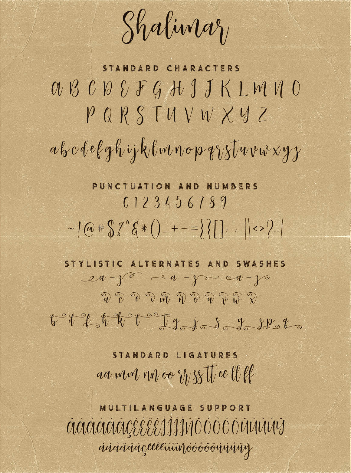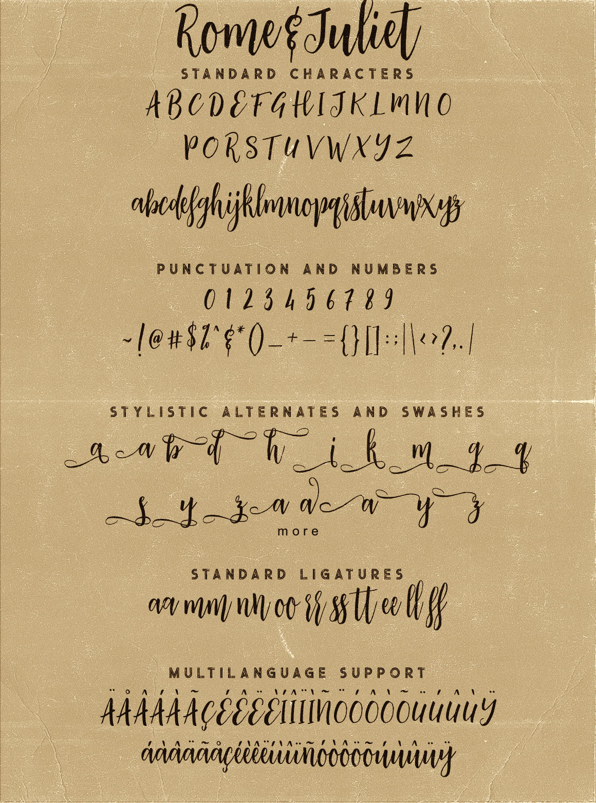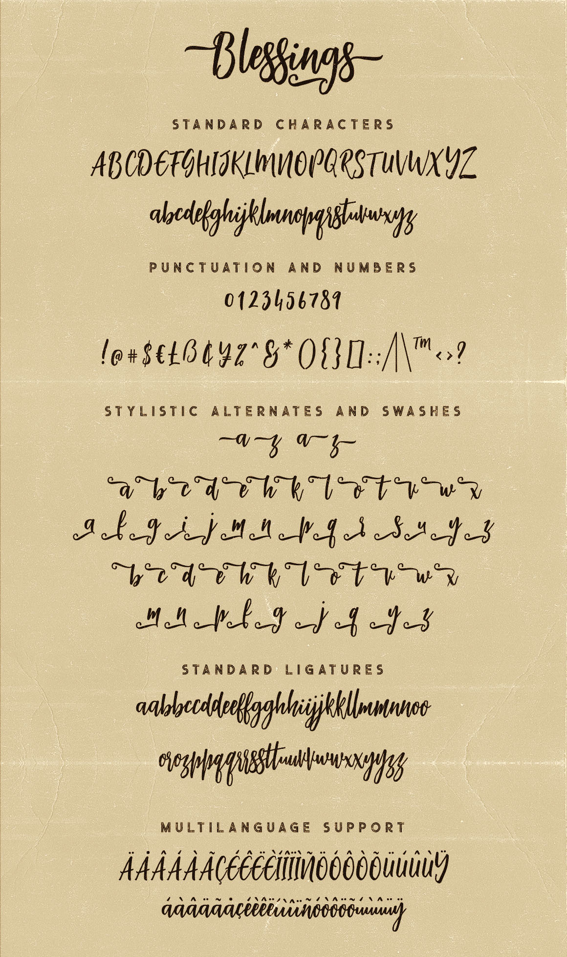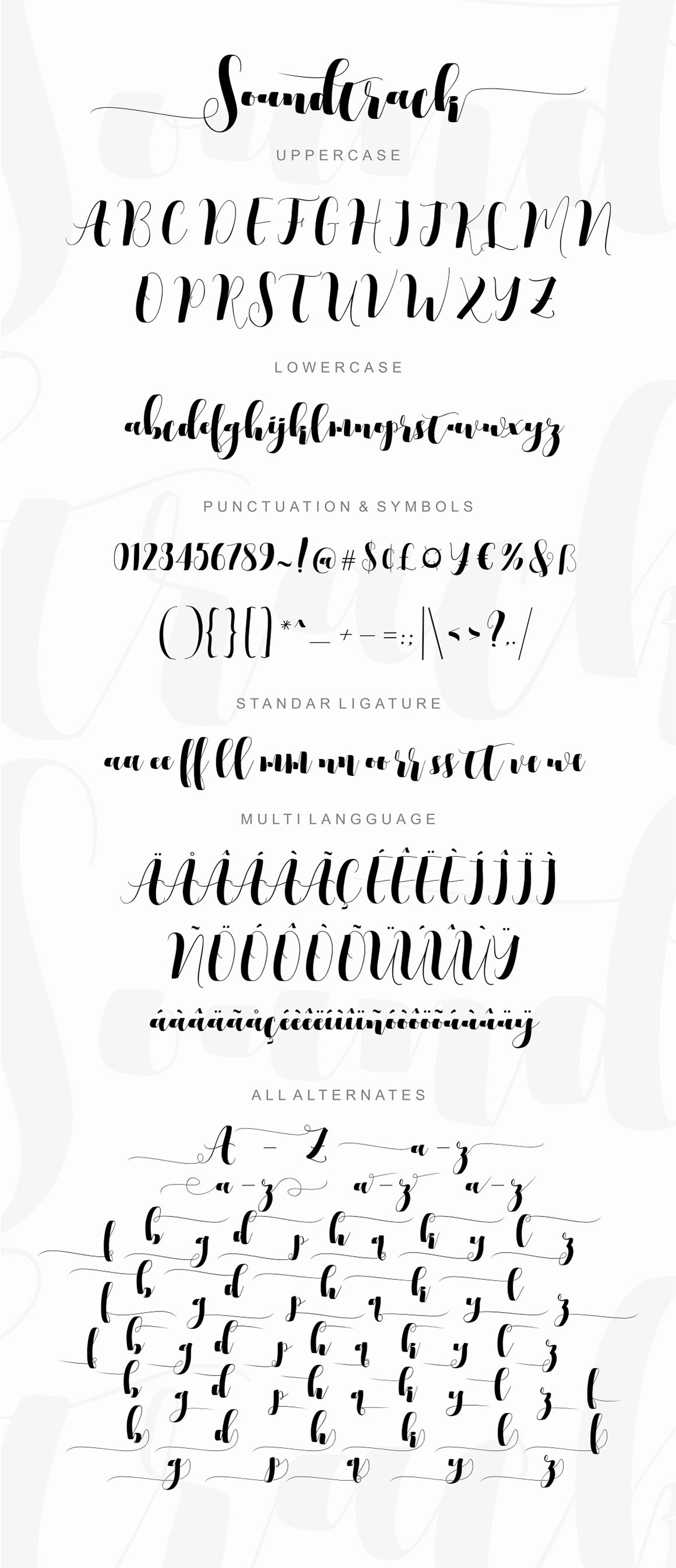 - All script fonts comes with multilanguage support and lot of stylistic alternates. All sans fonts don’t have multilanguage support!