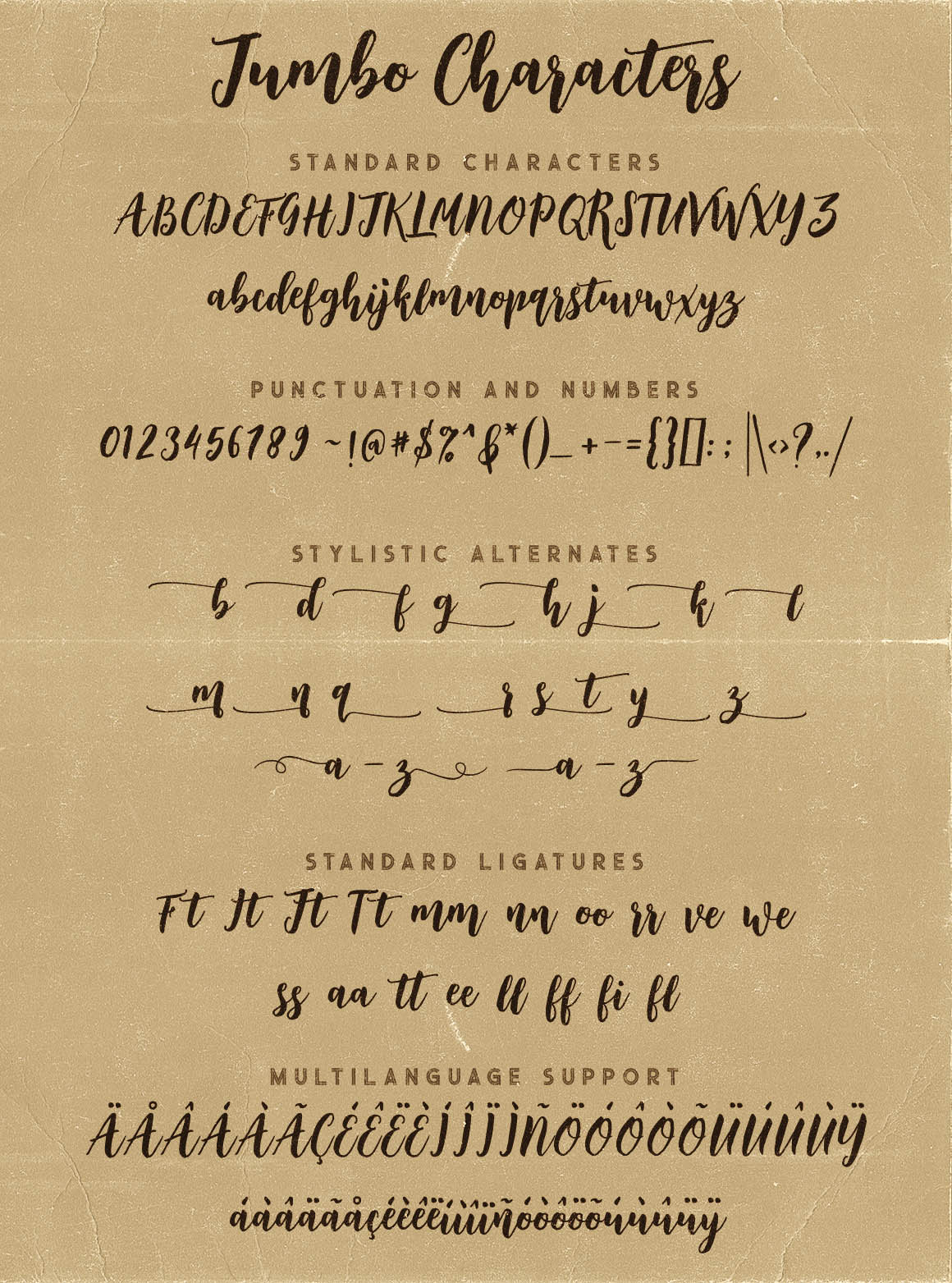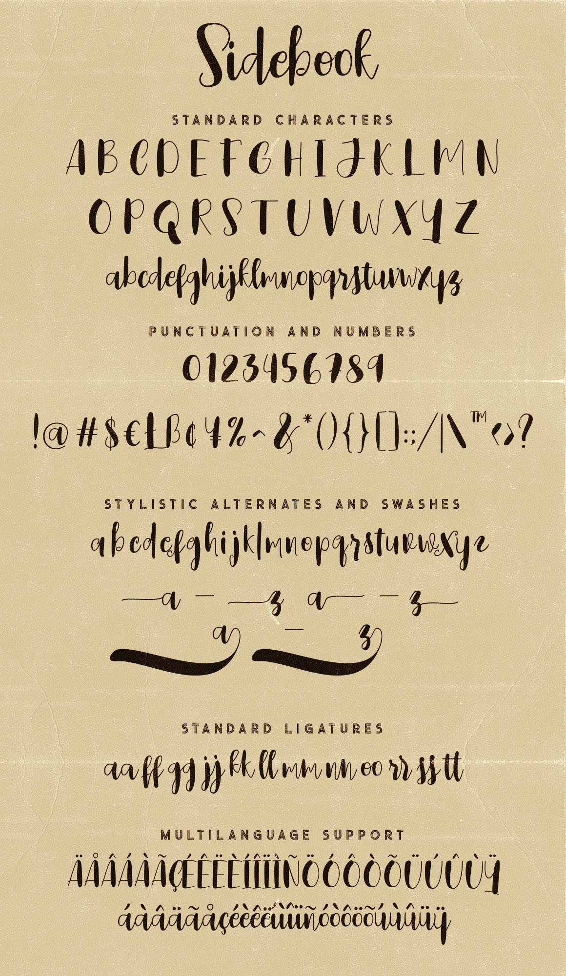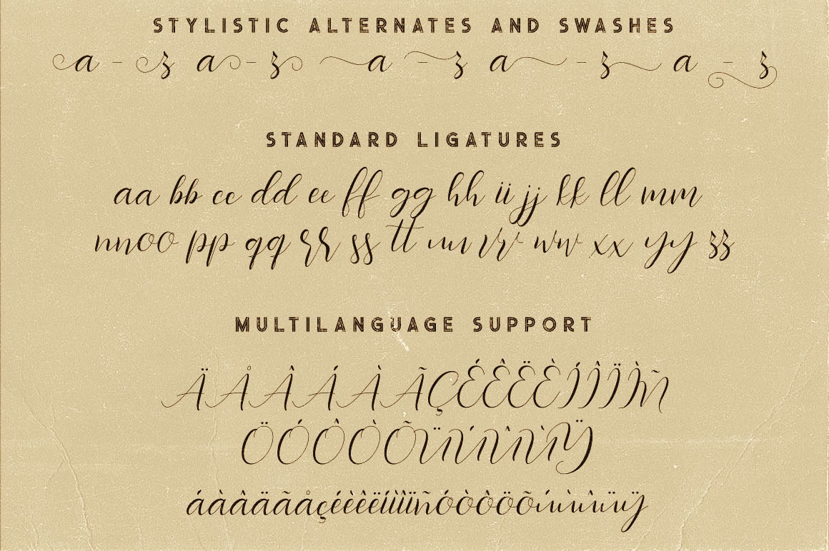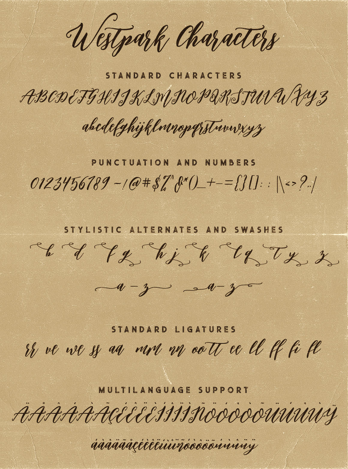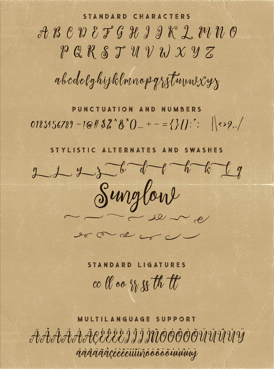 - All script fonts comes with multilanguage support and lot of stylistic alternates. All sans fonts don’t have multilanguage support!
