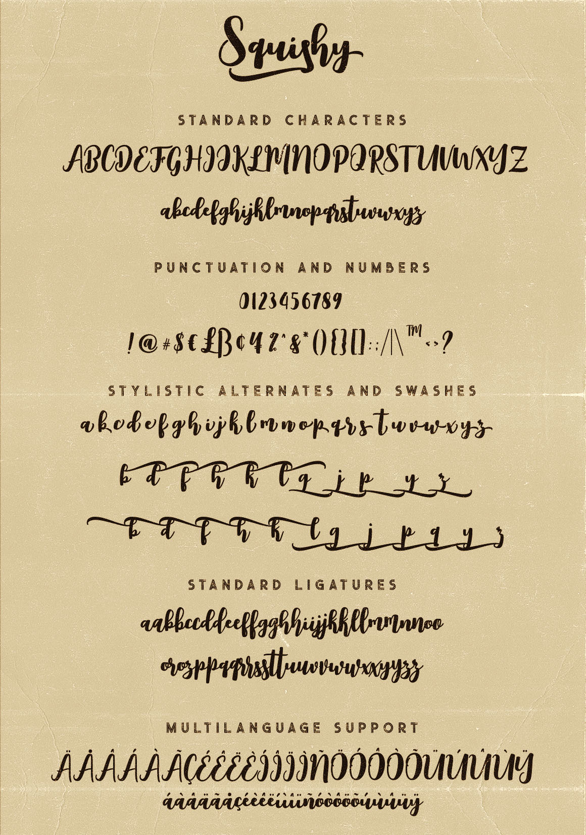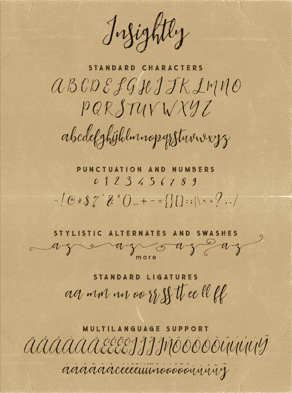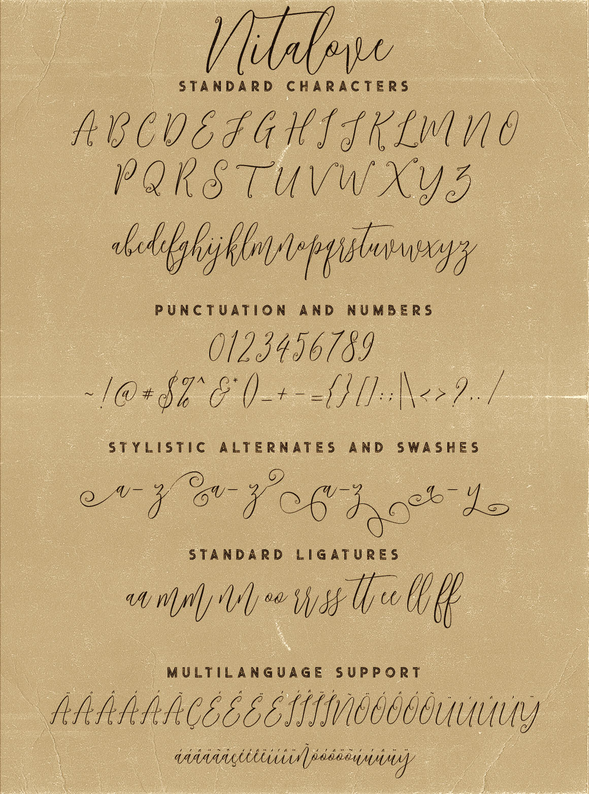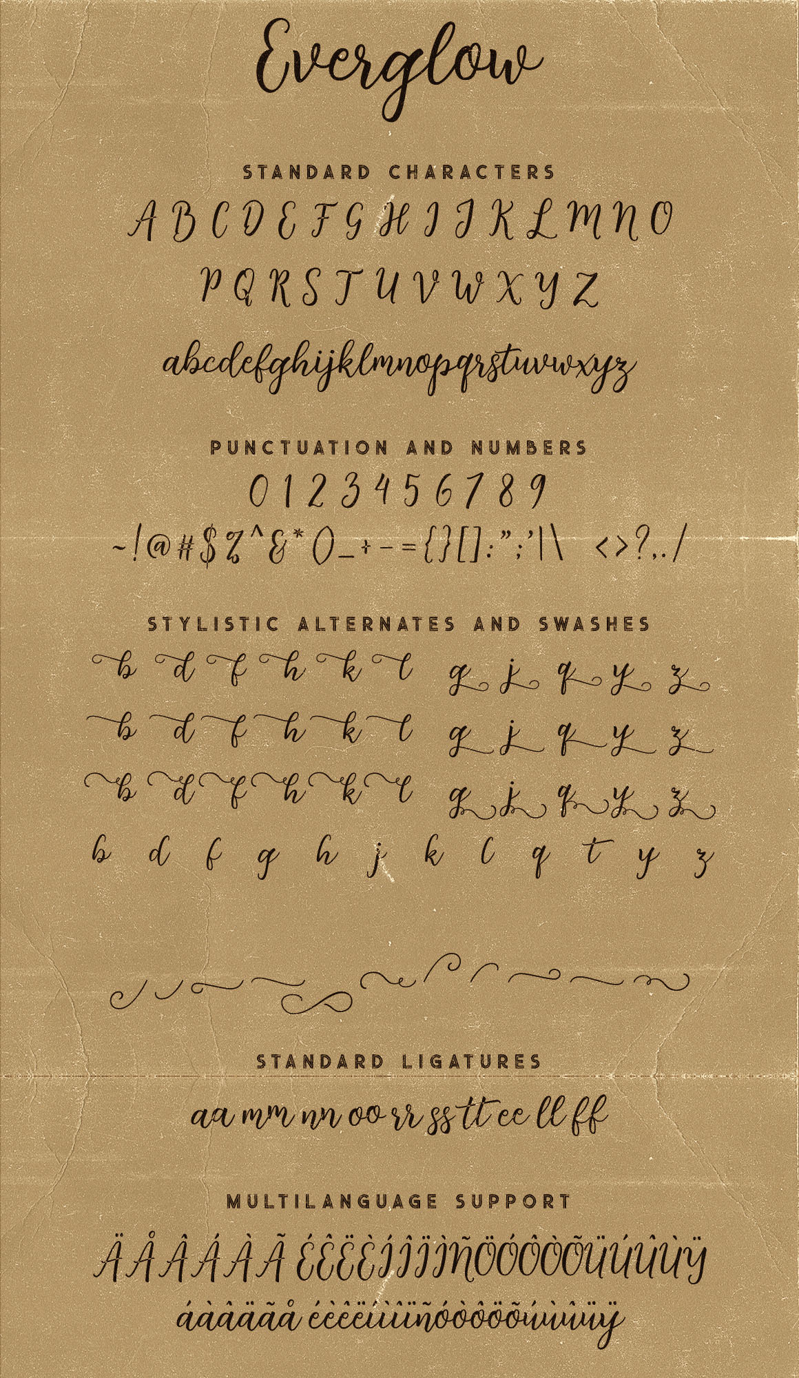 - All script fonts comes with multilanguage support and lot of stylistic alternates. All sans fonts don’t have multilanguage support!
