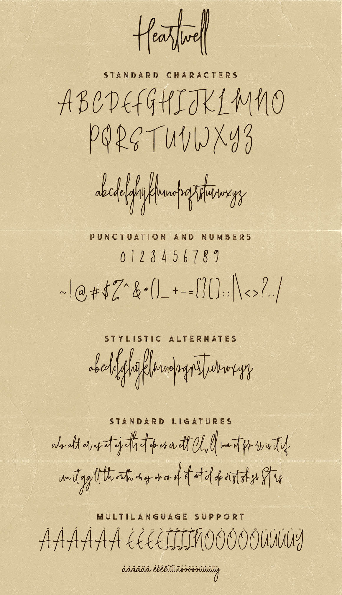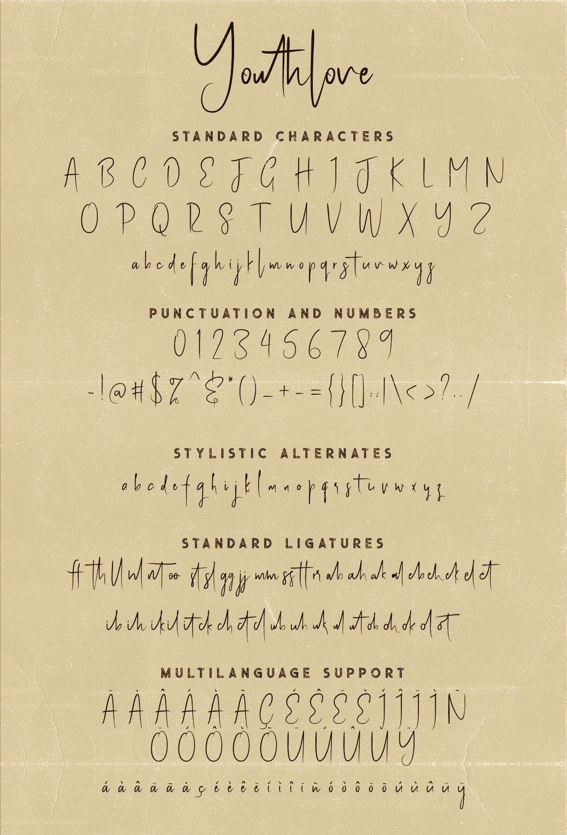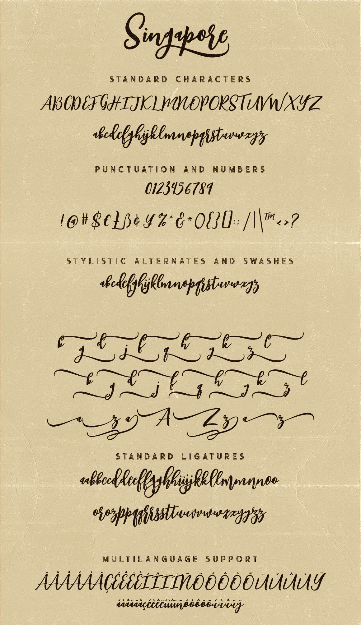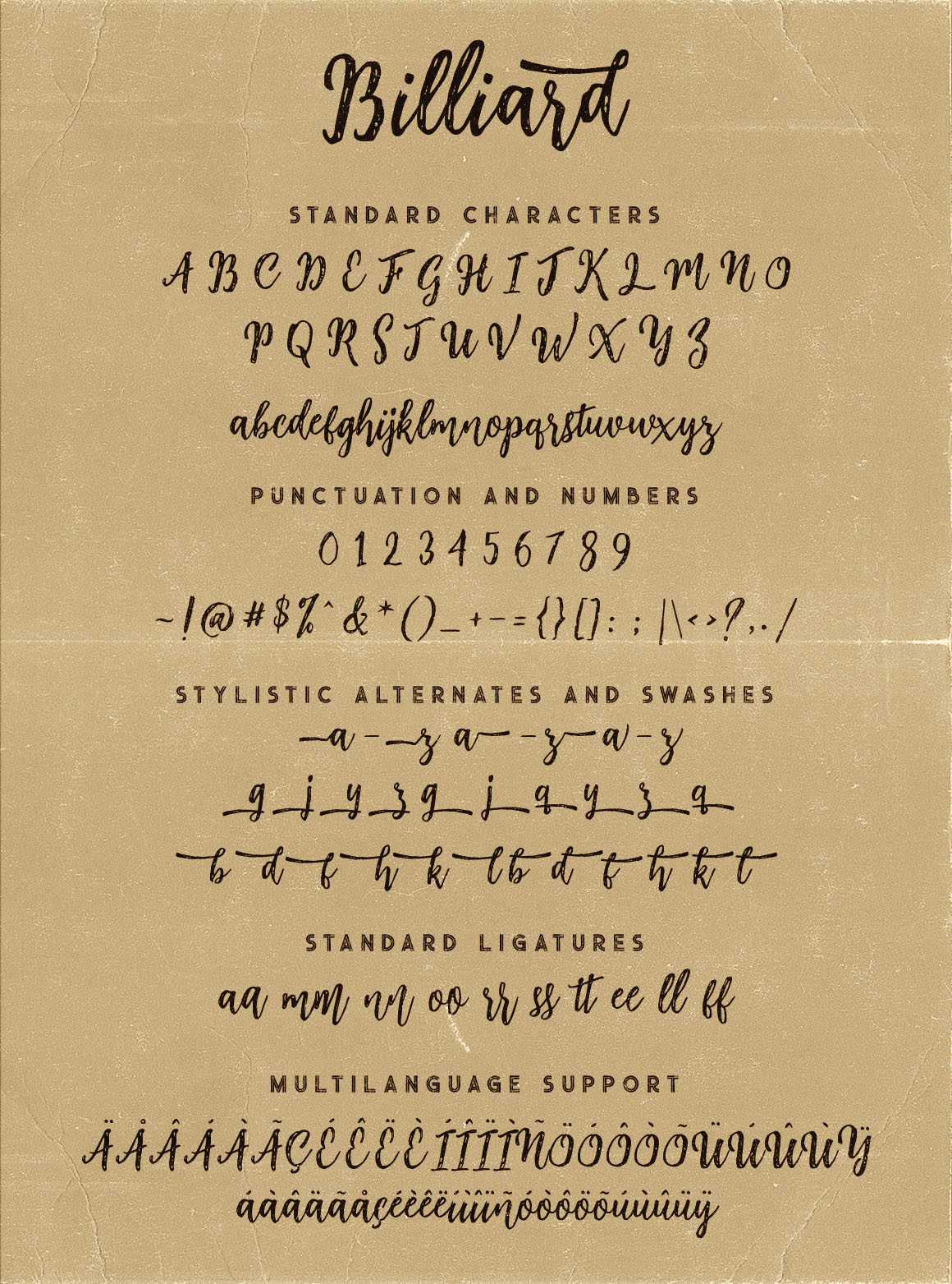 - All script fonts comes with multilanguage support and lot of stylistic alternates. All sans fonts don’t have multilanguage support!