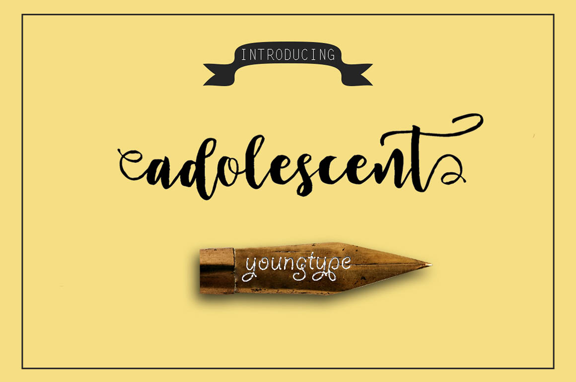 It’s an modern typeface with a tasty flow. Adolescent Script features alternate characters, including initial,& end swashes terminal, ligatures and International support for most Western Languages is included.This one should make your designs instantly professional and jaw-dropping! Be a perfect professional in a minute and start creating modern designs like ads, sales, logos, branding, posters, social media text overlays today!