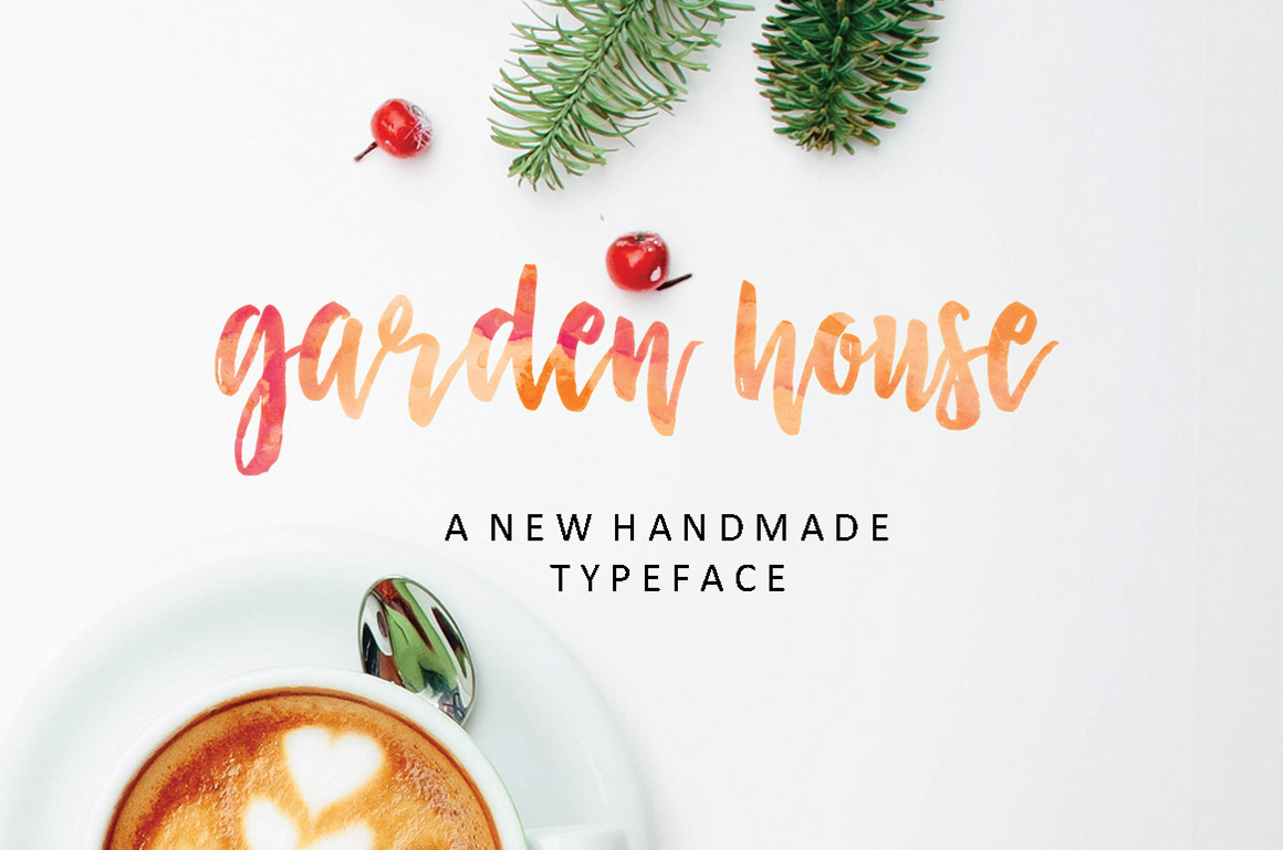 Garden house Script Font. It’s an modern typeface with a tasty flow. Garden house Script features alternate characters, including initial,& end swashes terminal, ligatures and International support for most Western Languages is included. This one should make your designs instantly professional and jaw-dropping! Be a perfect professional in a minute and start creating modern designs like ads, sales, logos, branding, posters, social media text overlays today!