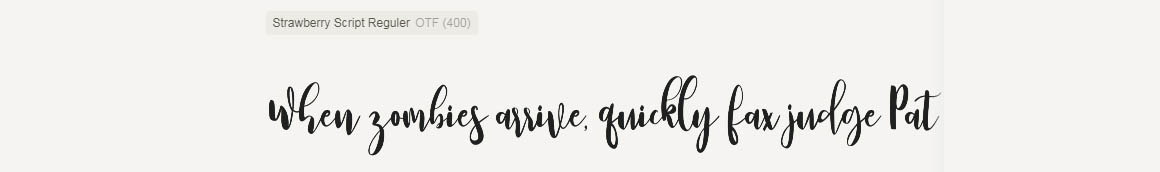 Strawberry Script is a modern brush font, organic, dynamic and energetic sytle.Can used for various purposes. such as the title, signature, logo, correspondence, wedding invitations, letterhead, signage, labels, newsletters, posters, badges, etc.
