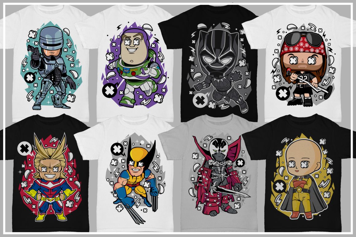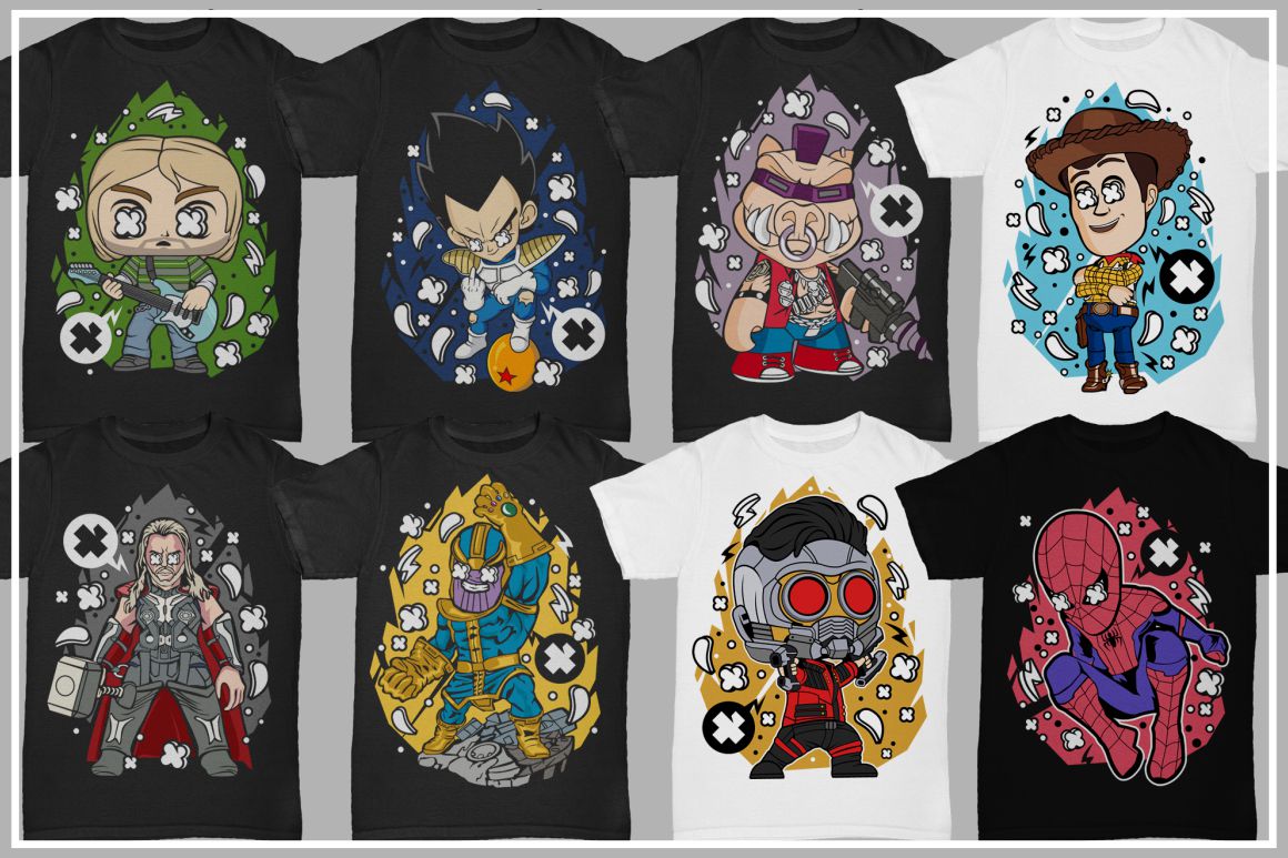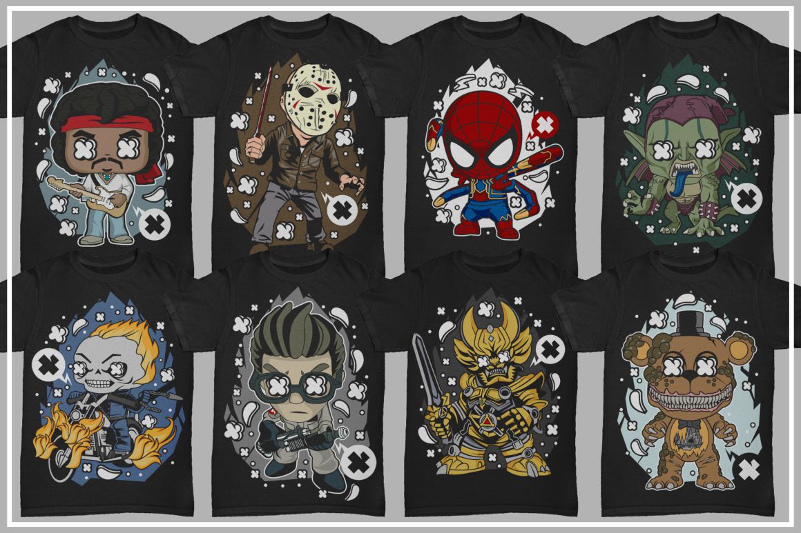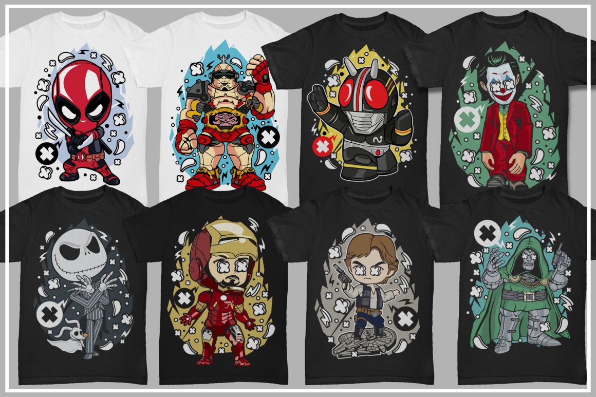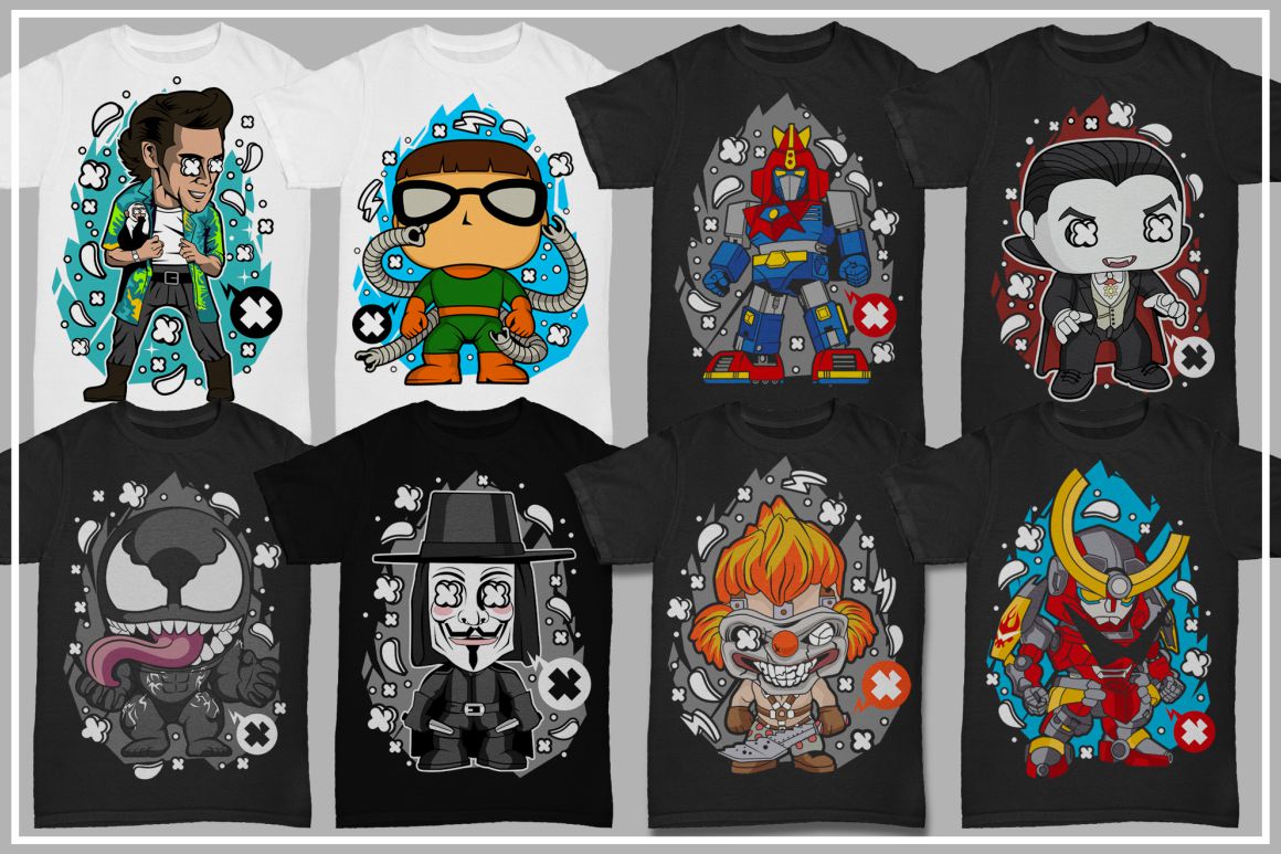 If you need something new in your vector graphics library or some cool illustrations for your new project we have a unique & super BIG vector illustrations bundle for you đ Already 3rd really HUGE bundle from Dan Roach. With 553 professional vector designs or illustrations with cartoon, funny & POP culture style. You can create unique t-shirt designs, stickers, badges, posters, invitations or logo designs with various styles.
