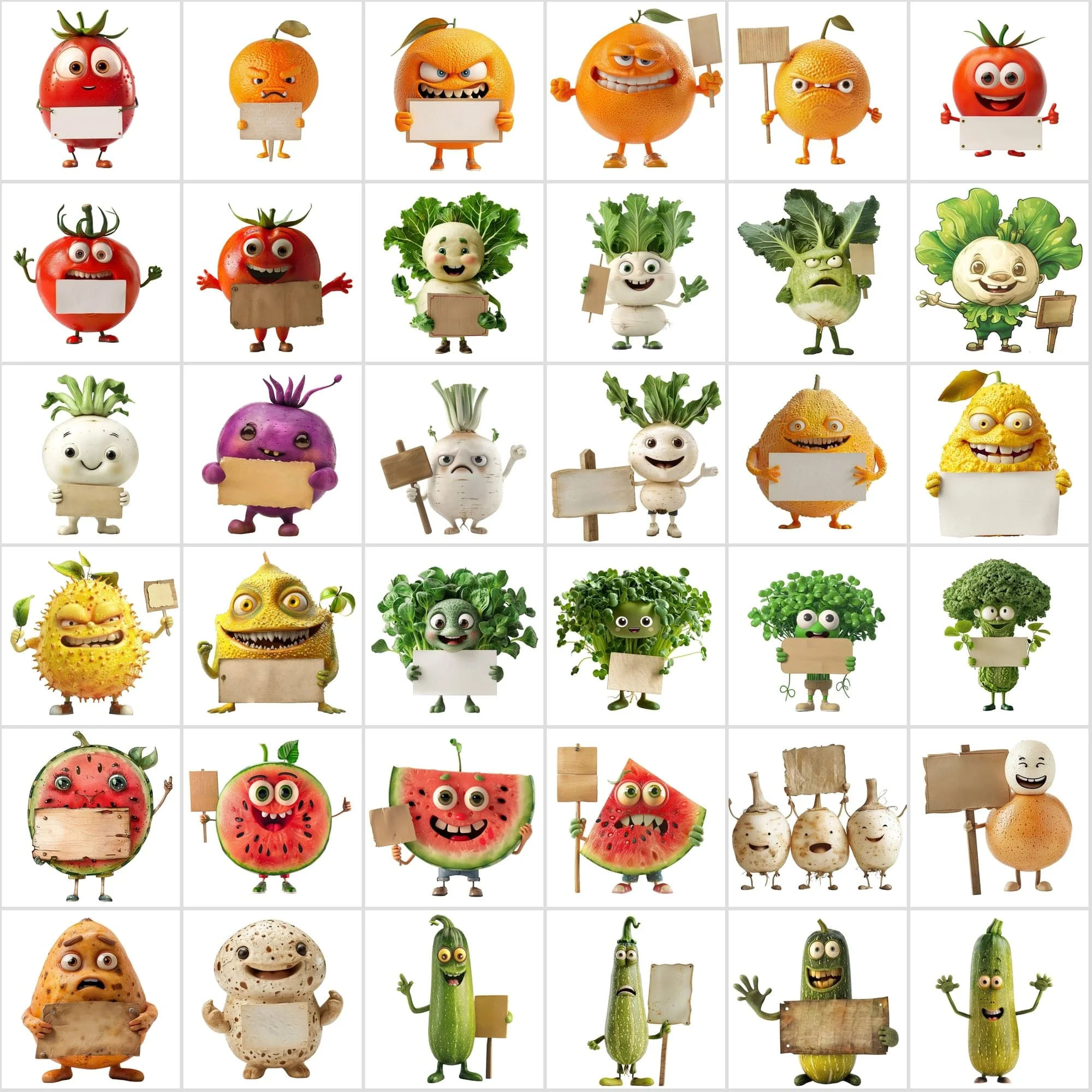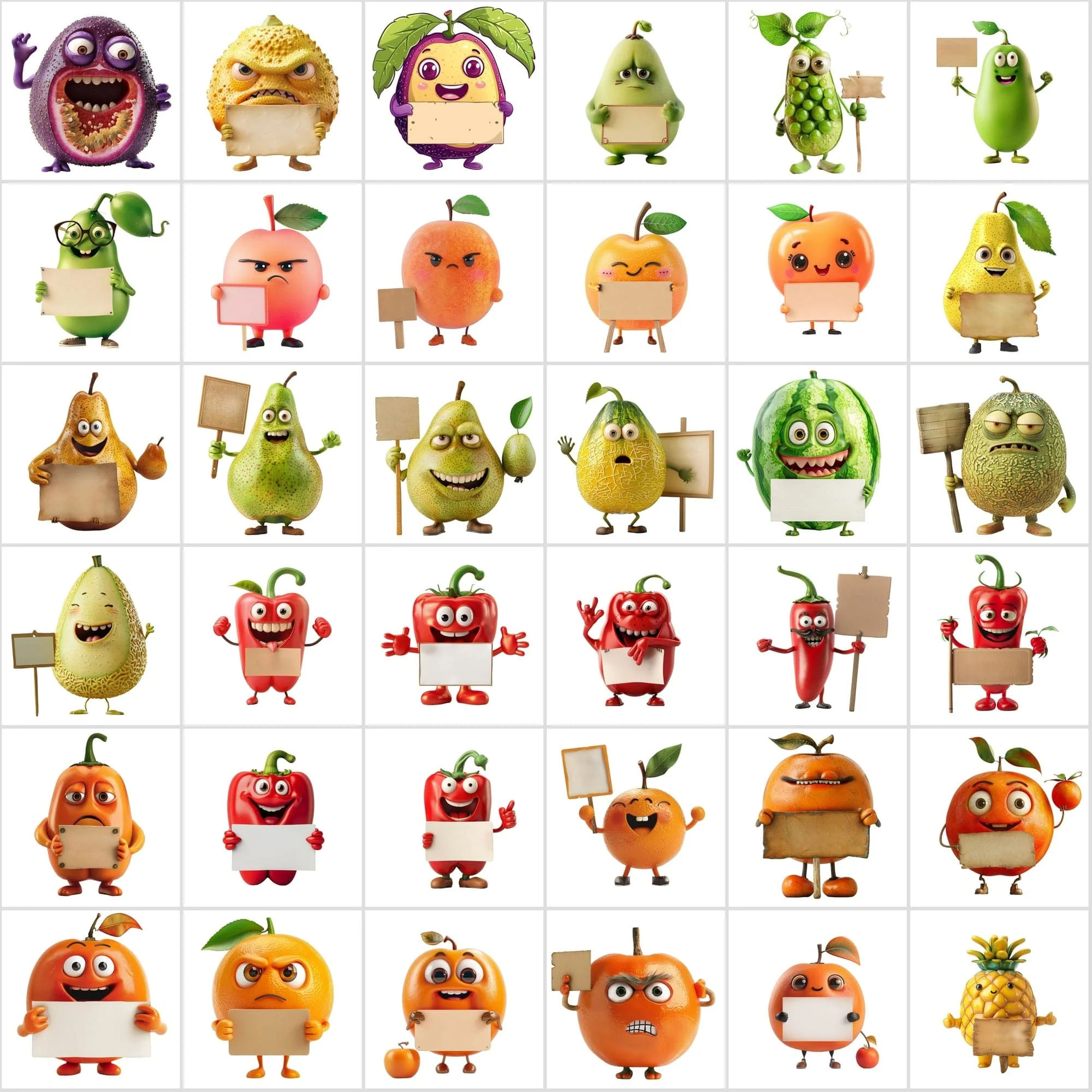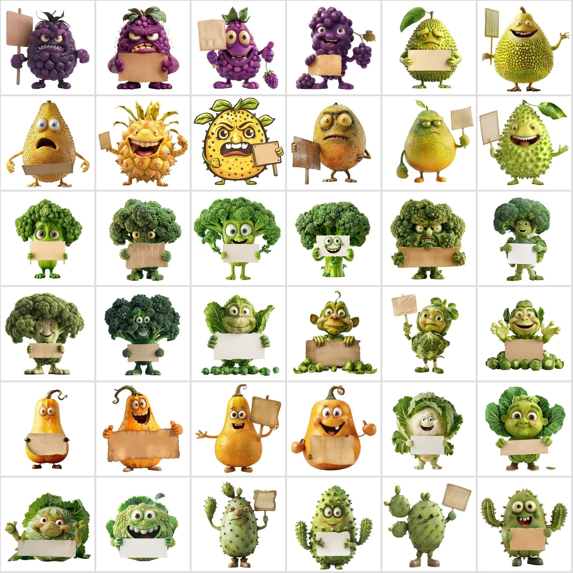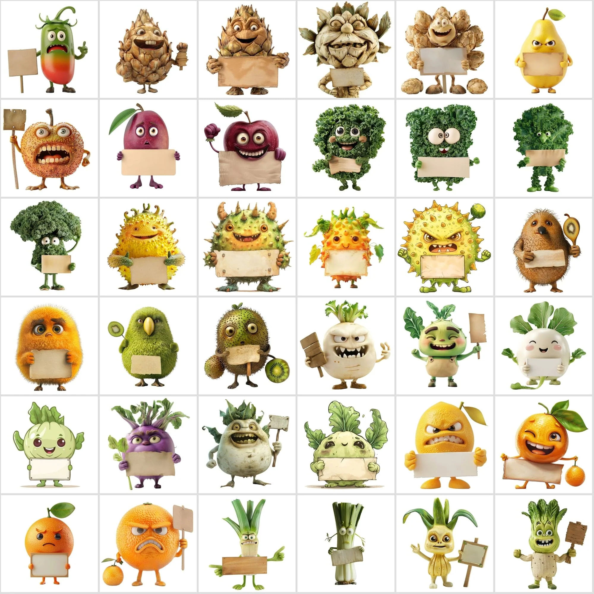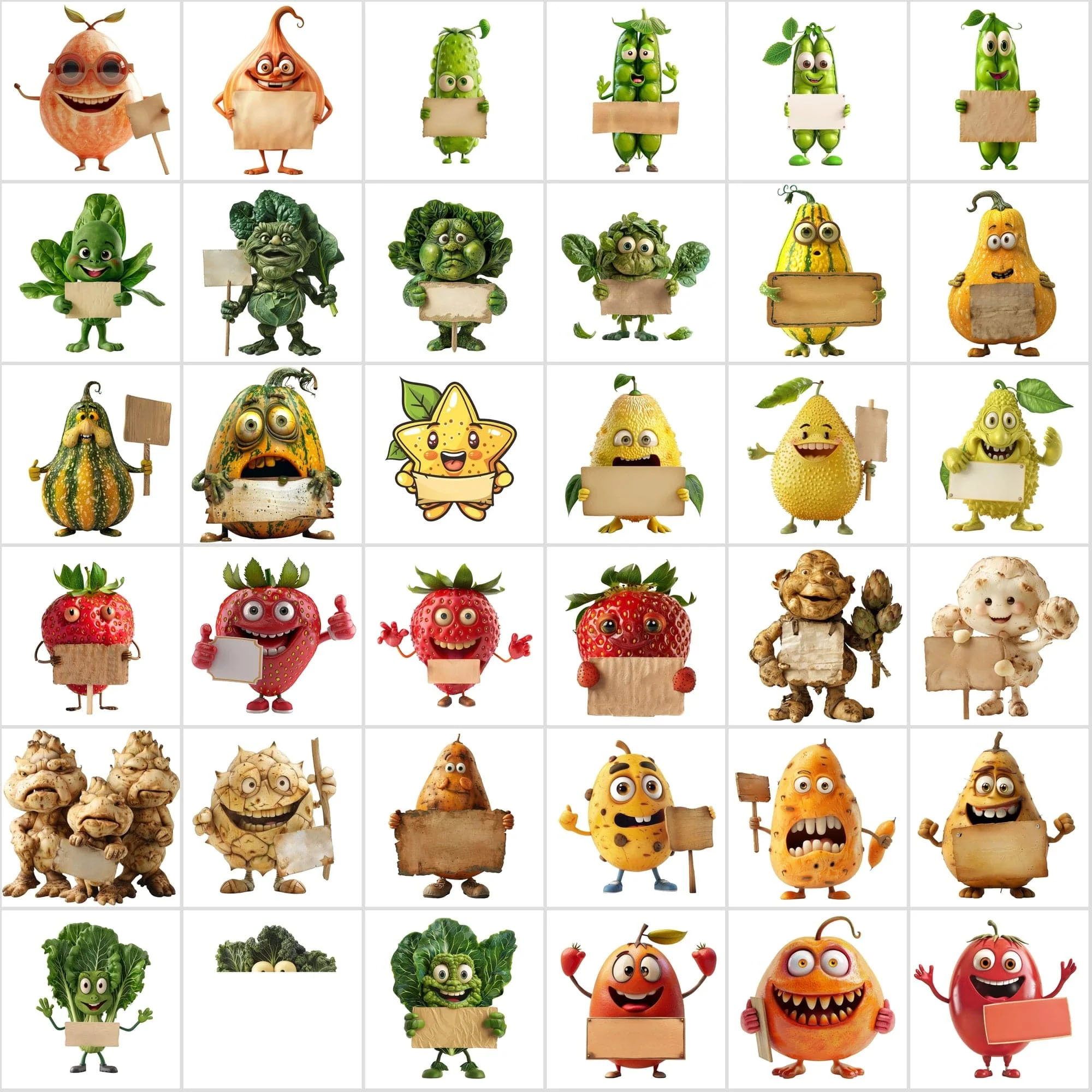 - 570 Transparent Fruit & Veggie Clipart – Cute Characters Holding Signs