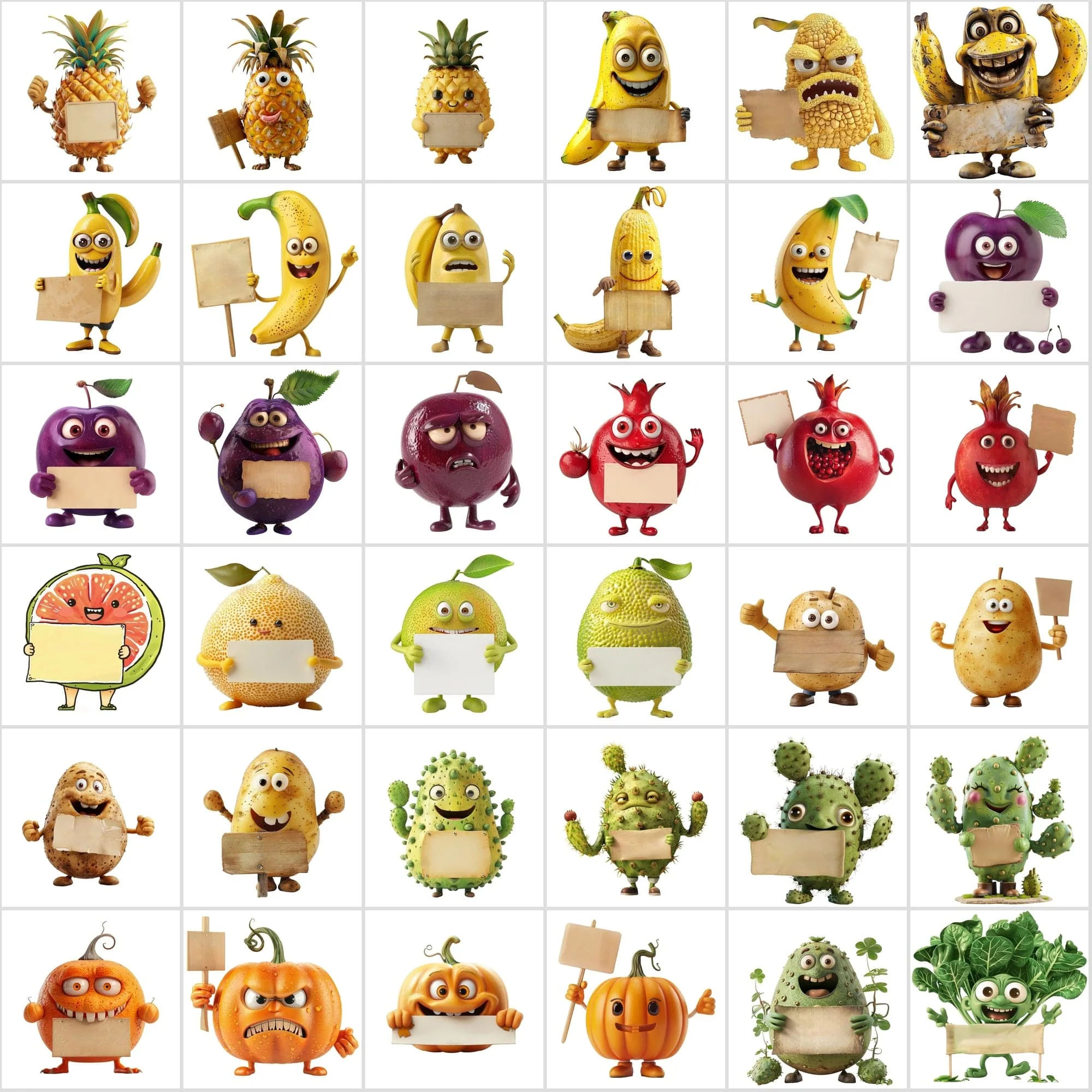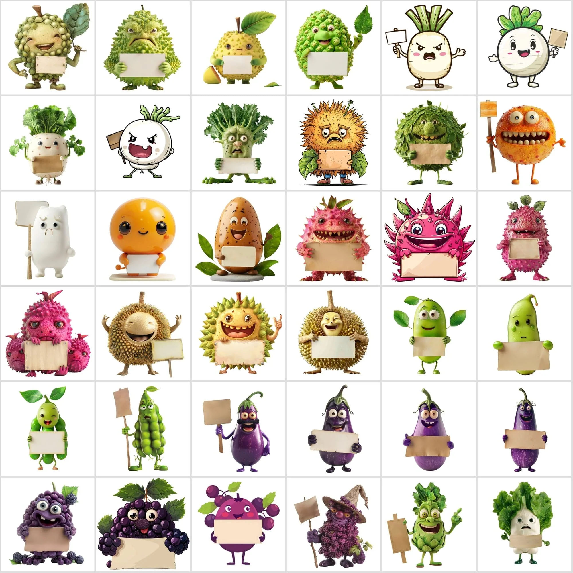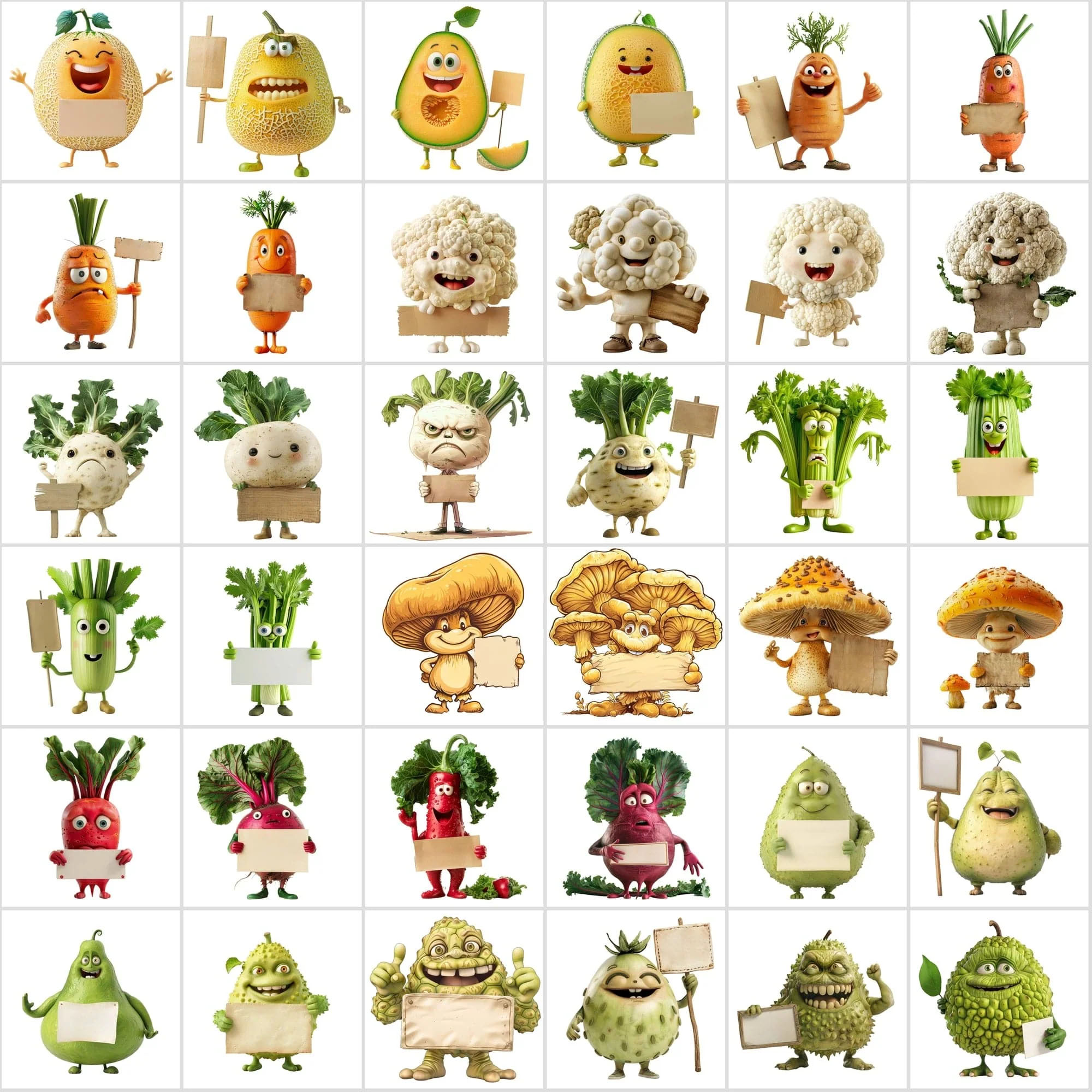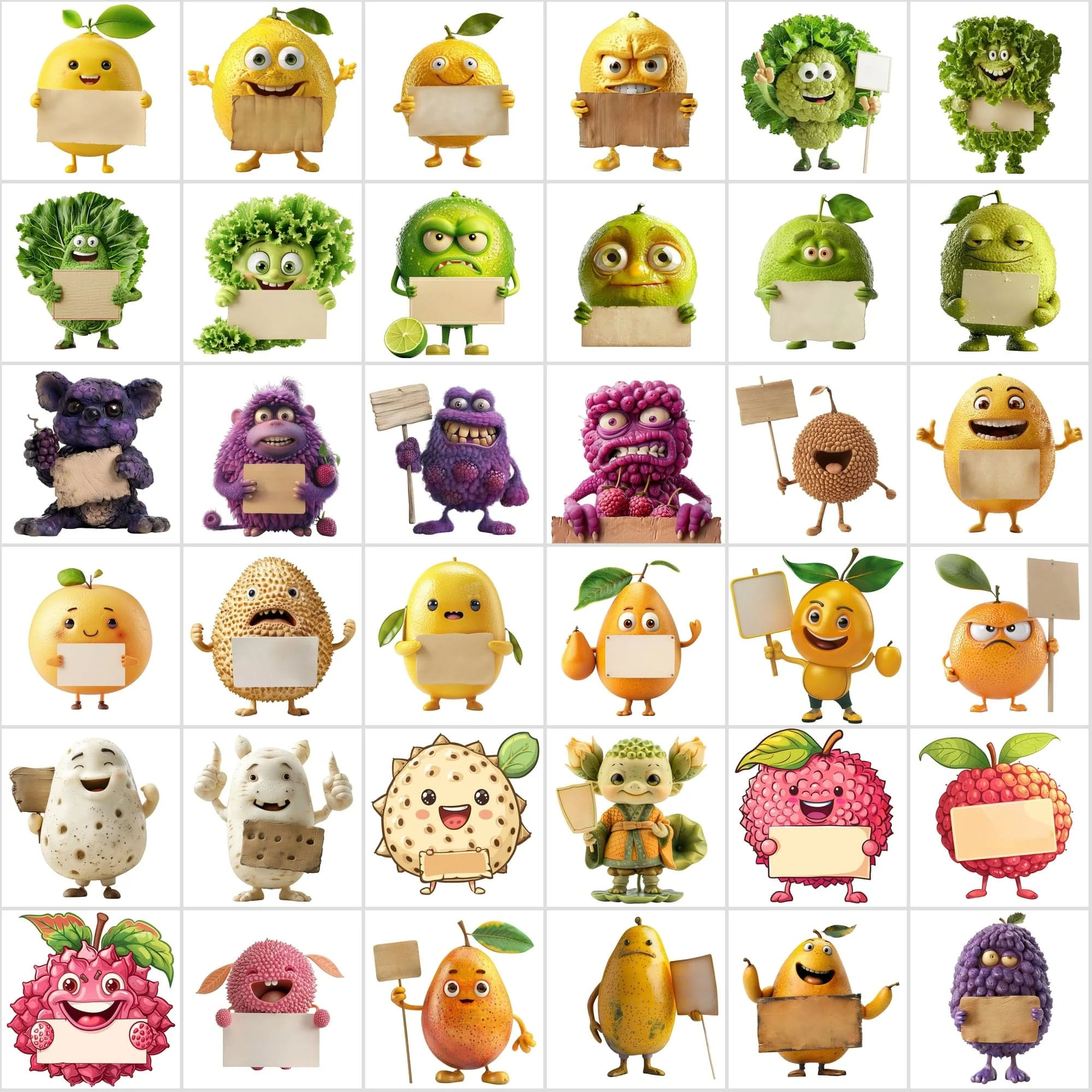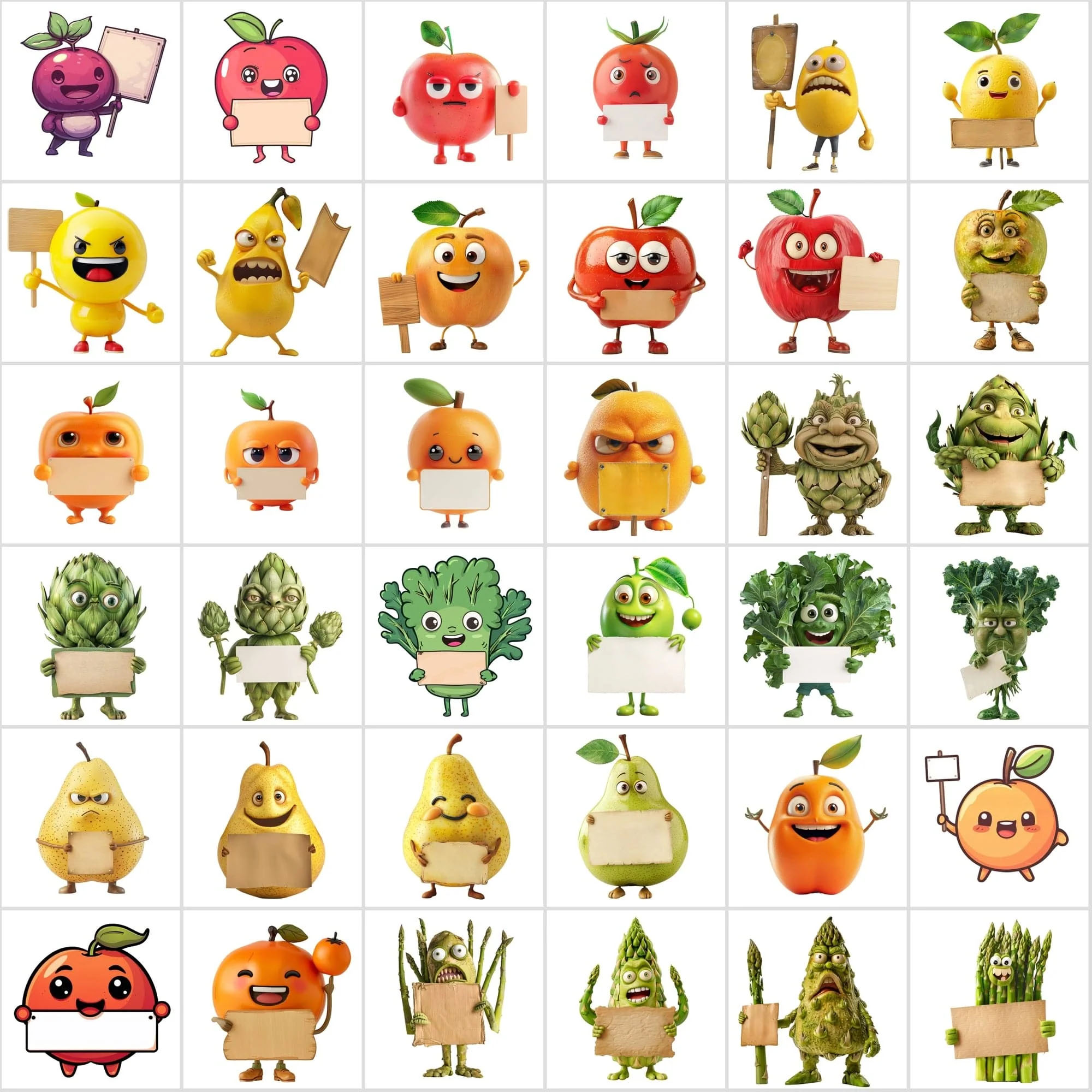 - 570 Transparent Fruit & Veggie Clipart – Cute Characters Holding Signs