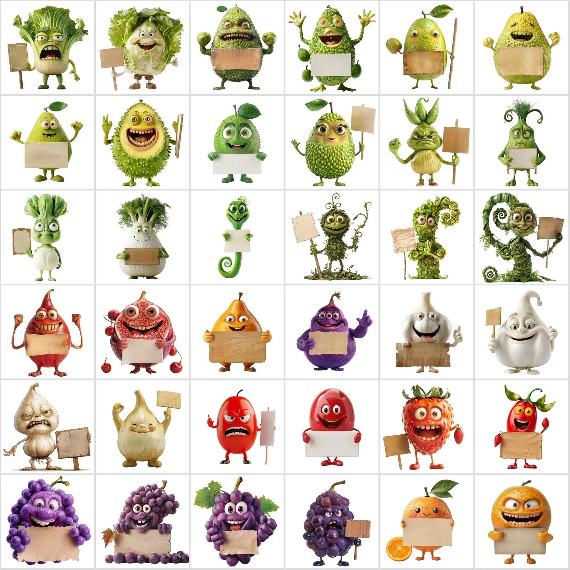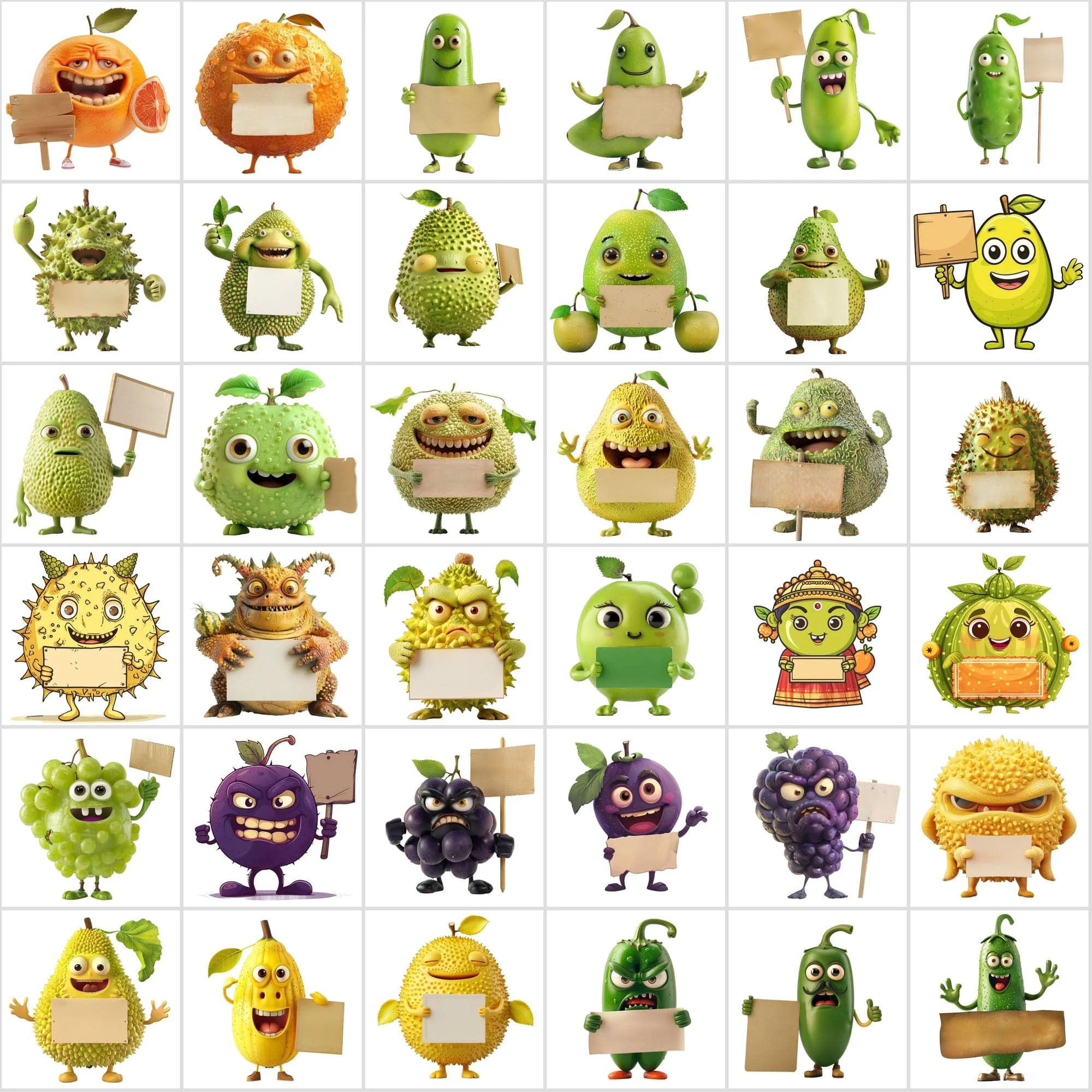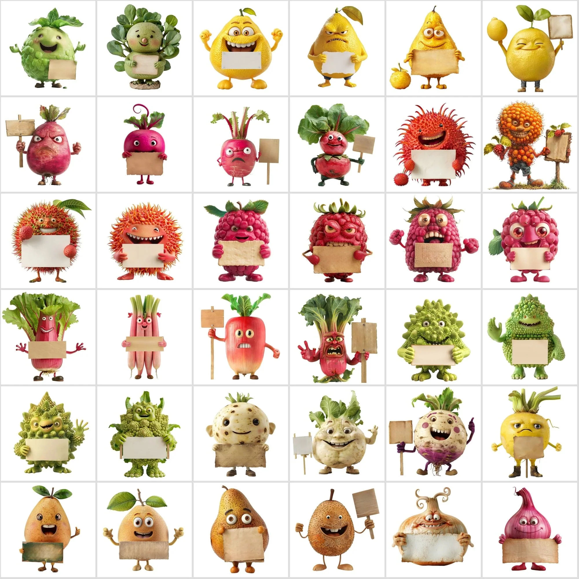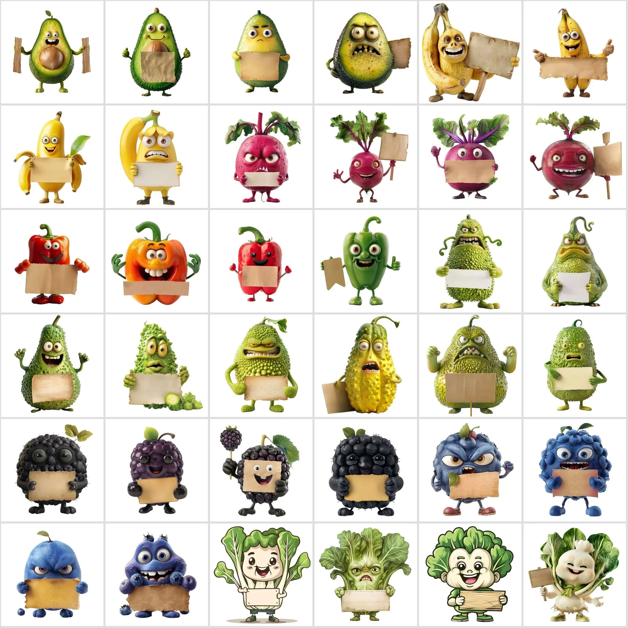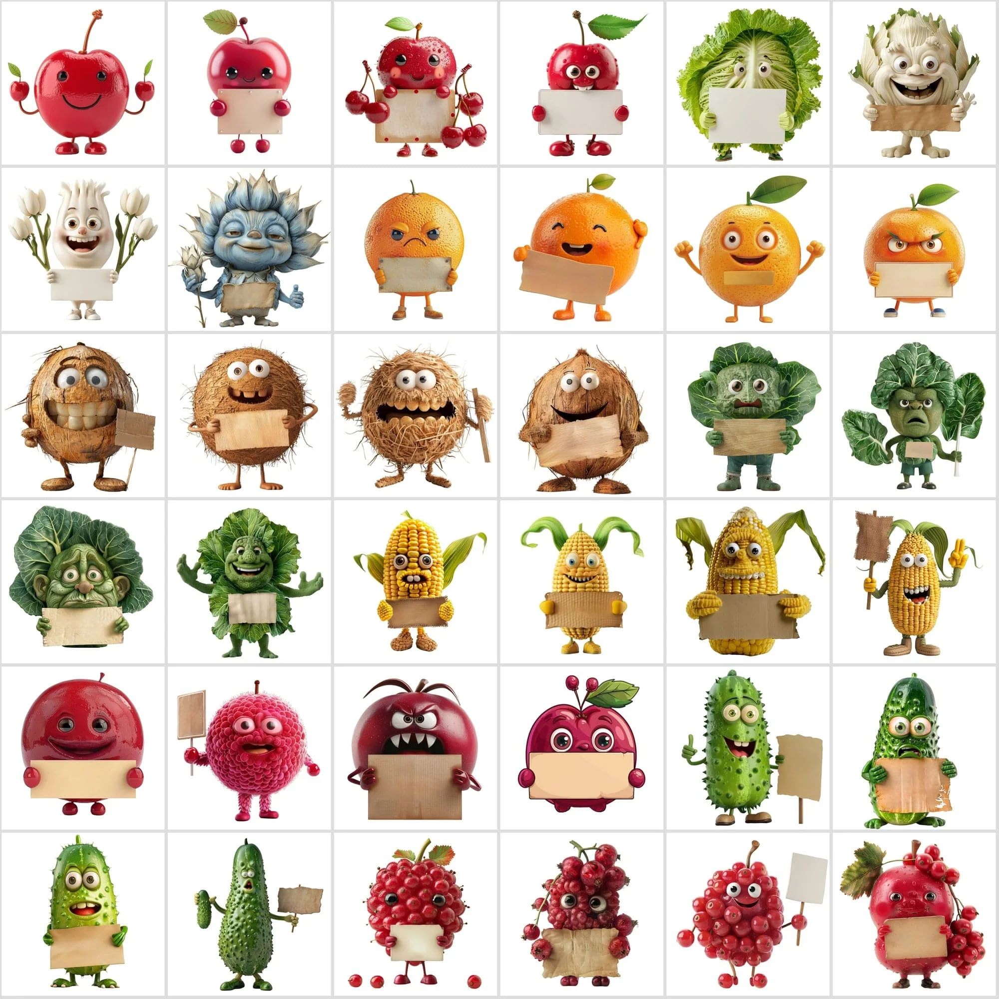 - 570 Transparent Fruit & Veggie Clipart – Cute Characters Holding Signs