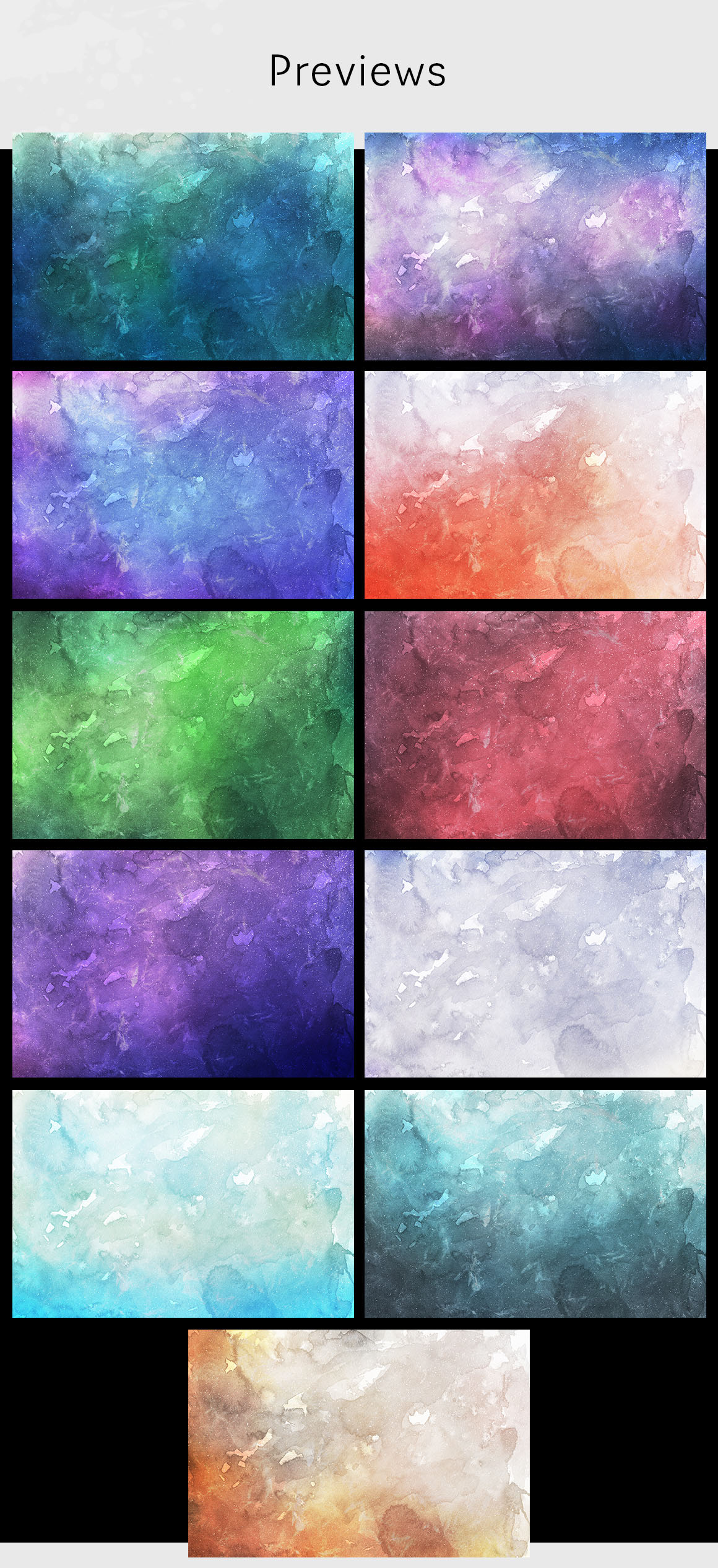 - 11 Watercolor Backgrounds – 3000 x 2000 pixels, 300 DPI