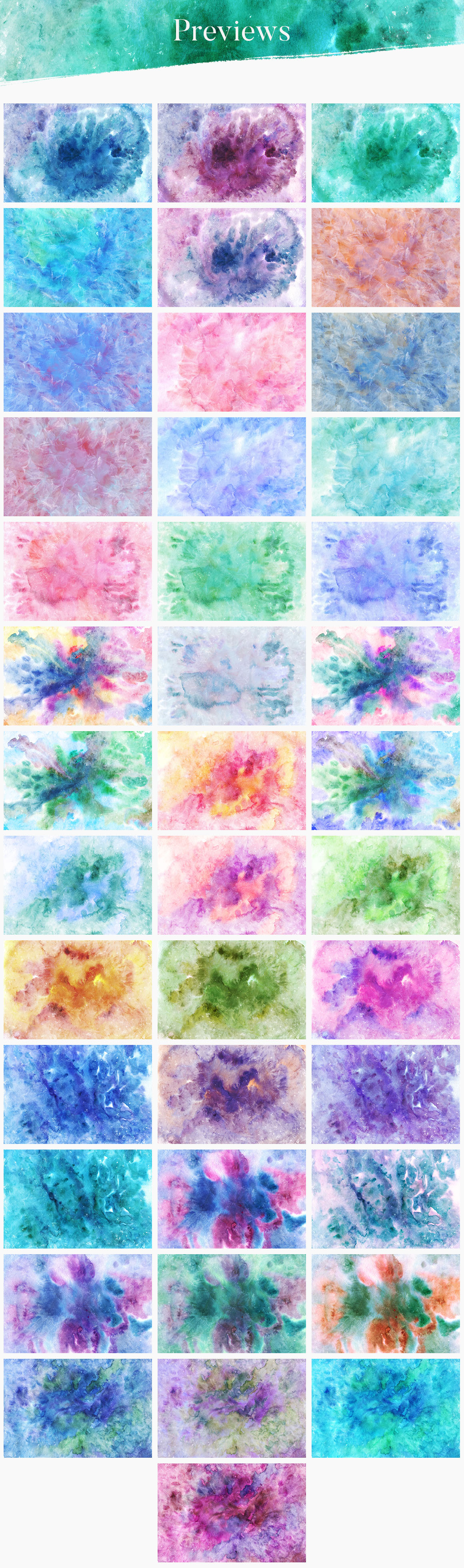 - 40 Crystallized Watercolor Backgrounds – 6000 x 4000 pixels, 300 DPI