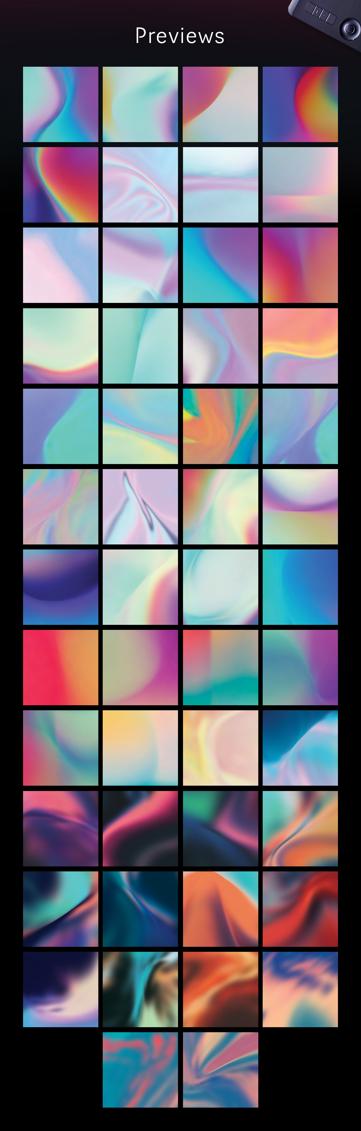- 50 Gradient Backgrounds – 5000 x 5000 pixels, 300 DPI