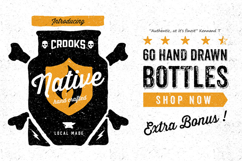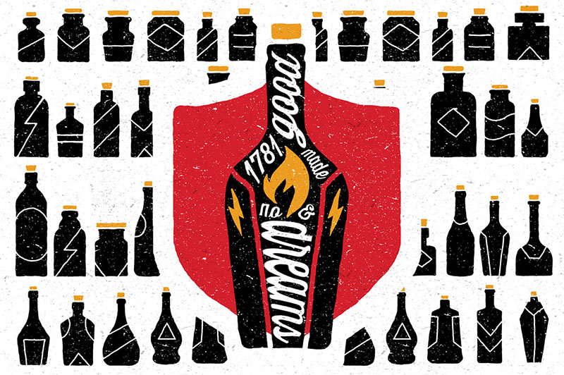 What can you do with this bottles KIT? As many as stars you can count, period. This KIT provide many possibilities for your projects, are you doing poster design right now? Invitations? T-shirt design? Or personal branding. Here’s what you get: 30 Hand drawn fill bottles, 30 Hand drawn line bottles, 30 hand drawn extra elements, 2 Crafted texture (2500x 1500 px PNG), 2 Grainy background(2500 x 1500 px Jpeg).