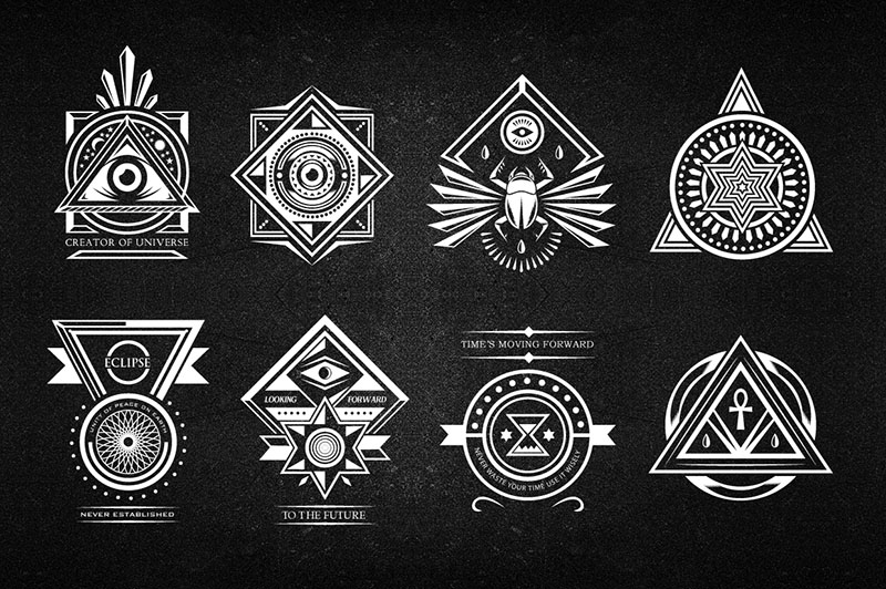 10 vector badges inspired from secret society badges and symbols. Available in : AI + EPS + PSD! 10 Badges, Vector Format, Editable text, Download link for fonts available inside folder, Fonts are 100% free!