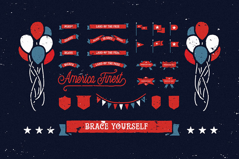 This America finest independence day tool kit is handcrafted with modern vintage soul. Here’s what you get: 6 Crafted circular American badge, 7 Crafted boxed American badge, 25 Crafted elements (Flags, ribbons, banner, etc.), 2 Crafted texture (2500x 1500 px PNG), 2 Grainy background(2500 x 1500 px Jpeg)