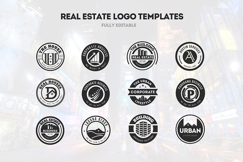 12 Real Estate & Business Logos and Badges ready to use and fully editable! PSD + AI + EPS included