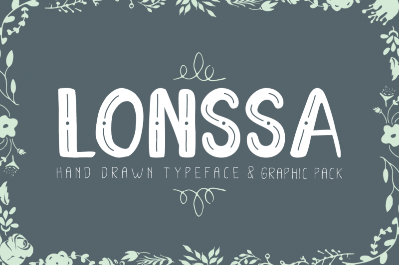 13. Lonssa typeface + mega graphic pack by Jiw