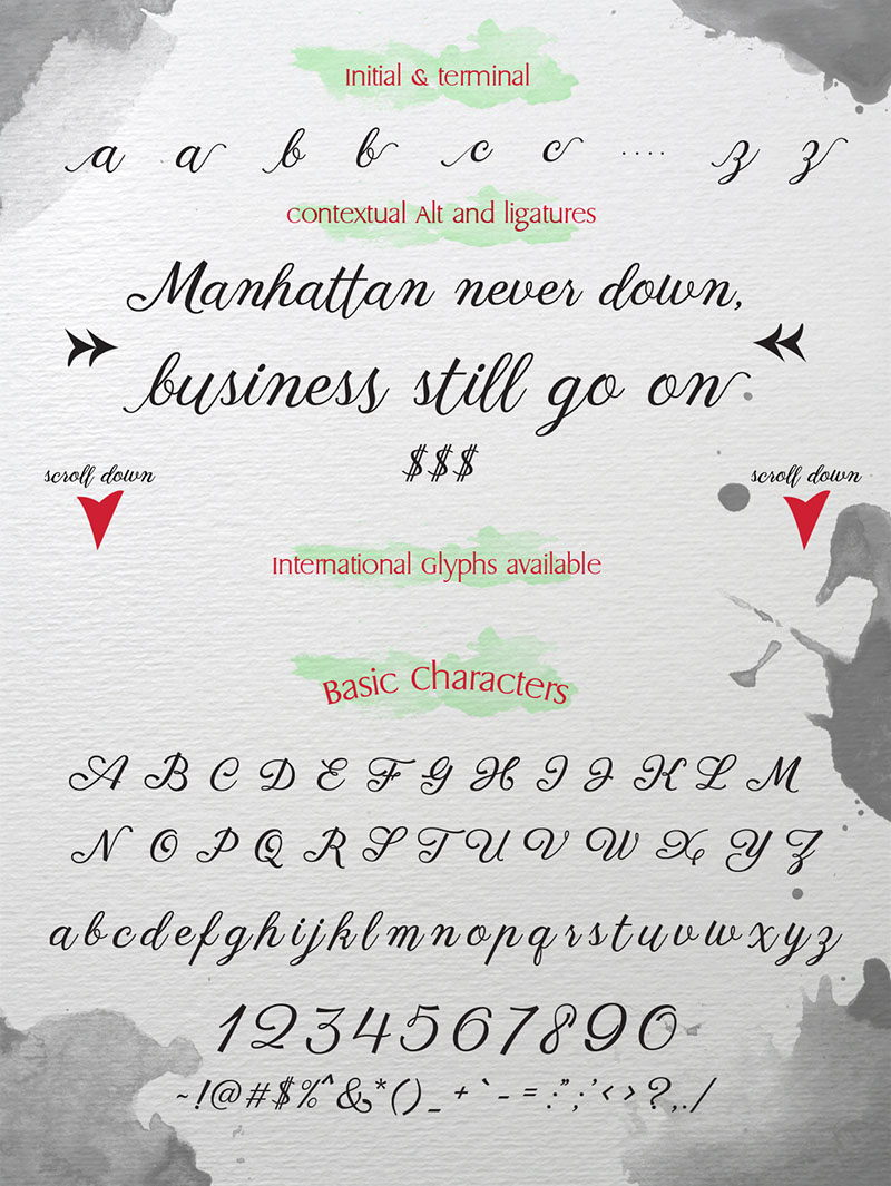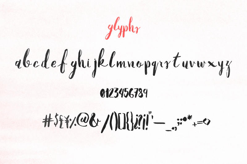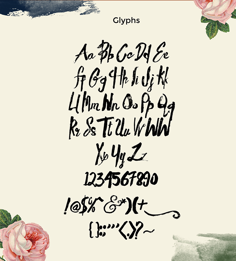 Heather is my third handmade font. It was made with a pen brush and some ink. Please feel free to enjoy this amazing font with a tons of glyphs made just four you who wants something natural, free, and handmade.