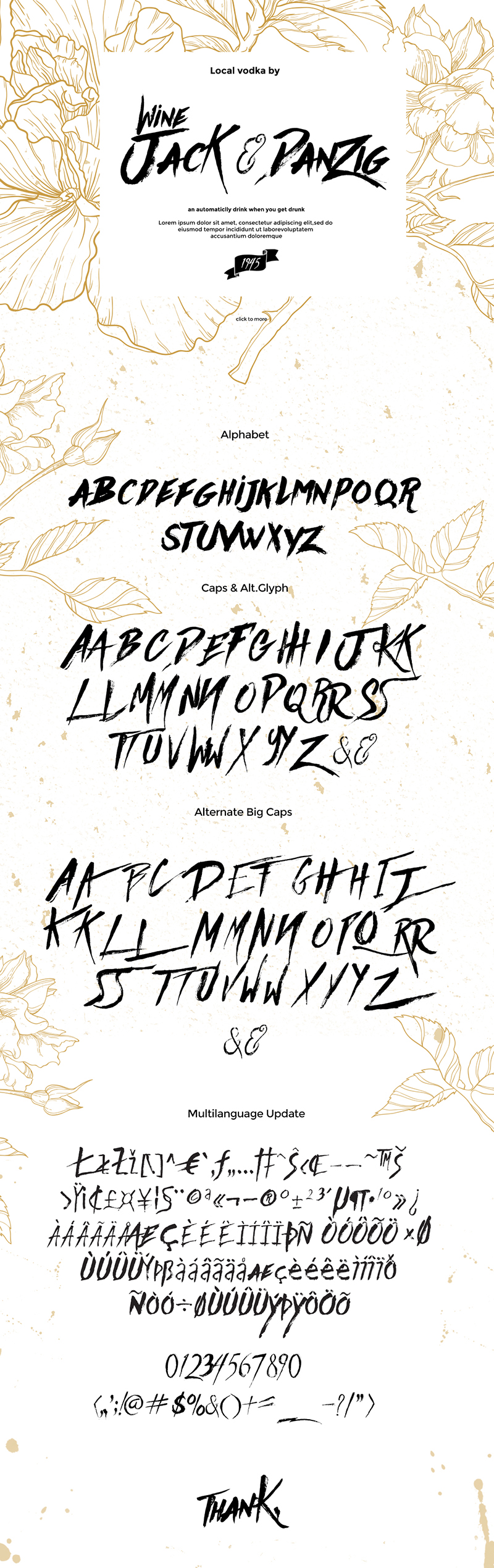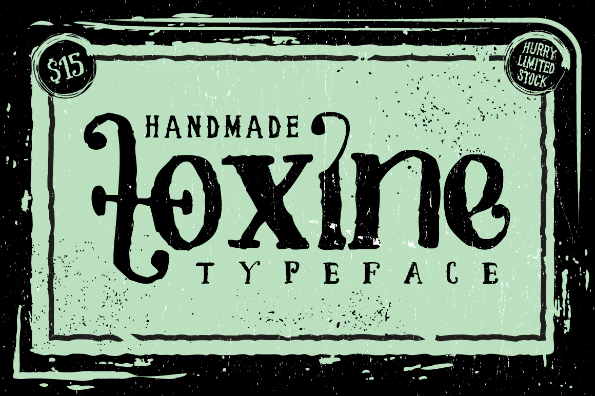 Toxine typeface is inspired by old hand drawn bottle label. It comes with Uppercase, Lowercase, Numbers, Punctuations, Currency, Multilingual characters, ligatures and Stylistic Alternates for the Uppercase letters & Lowercase. This font is suitable for your labels, posters, vintage projects, t-shirt design, etc. You’ll get also hand drawn ornament pack with this font.