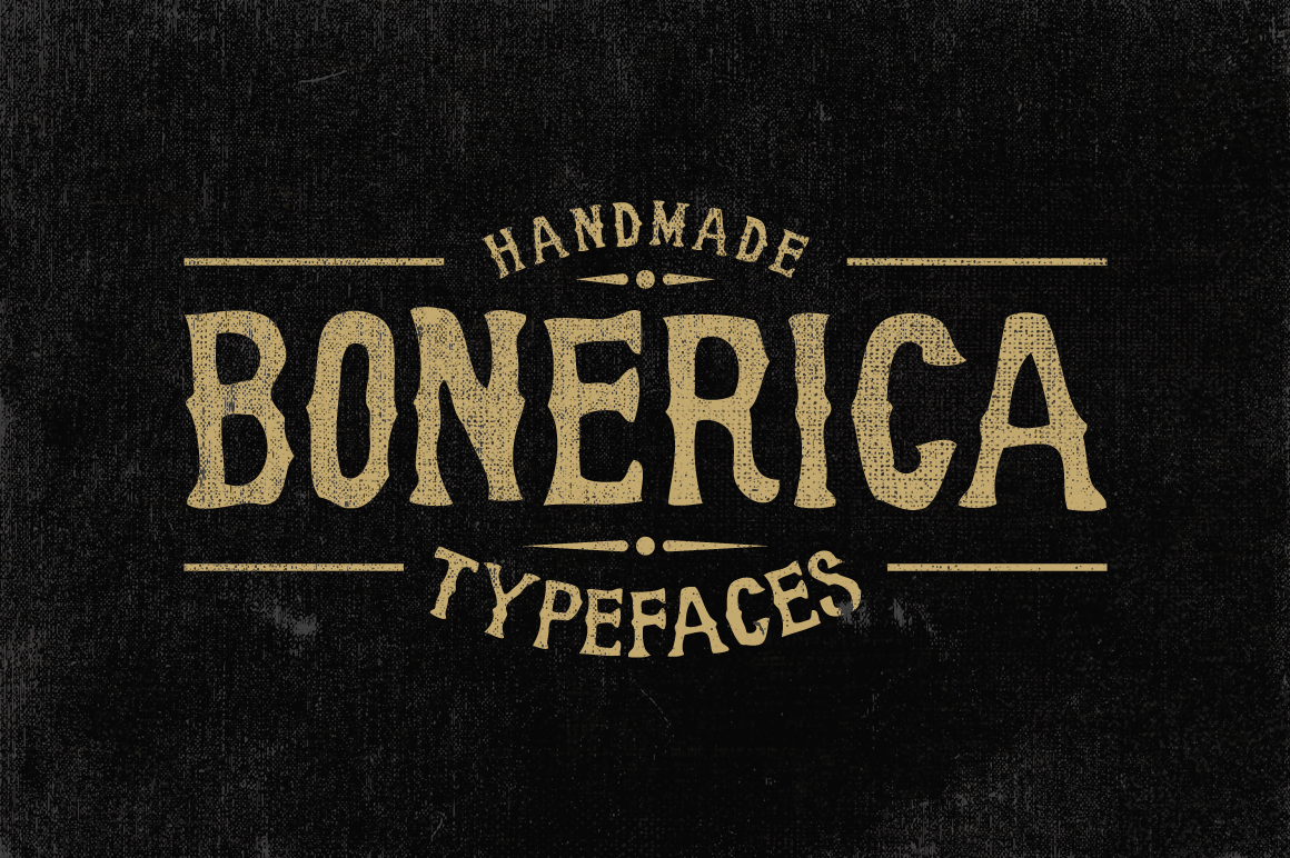 Bonerica typeface is a serif font made by hand. This one is good for your logo,greeting cards, posters, labels, t-shirt design, modern vintage, etc.